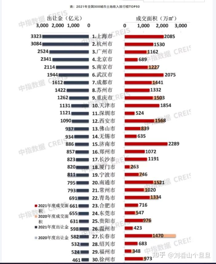 来源网络:https://baijiahao.baidu.com/s?id=1690096447857251357&wfr=spider&for=pc 2021年郑州土地出让金收入857 排名16