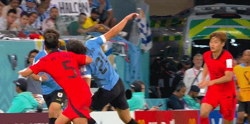 不对,是这球!郑又荣的斩首行动!解围球稳稳命中乌拉圭主教练面部。