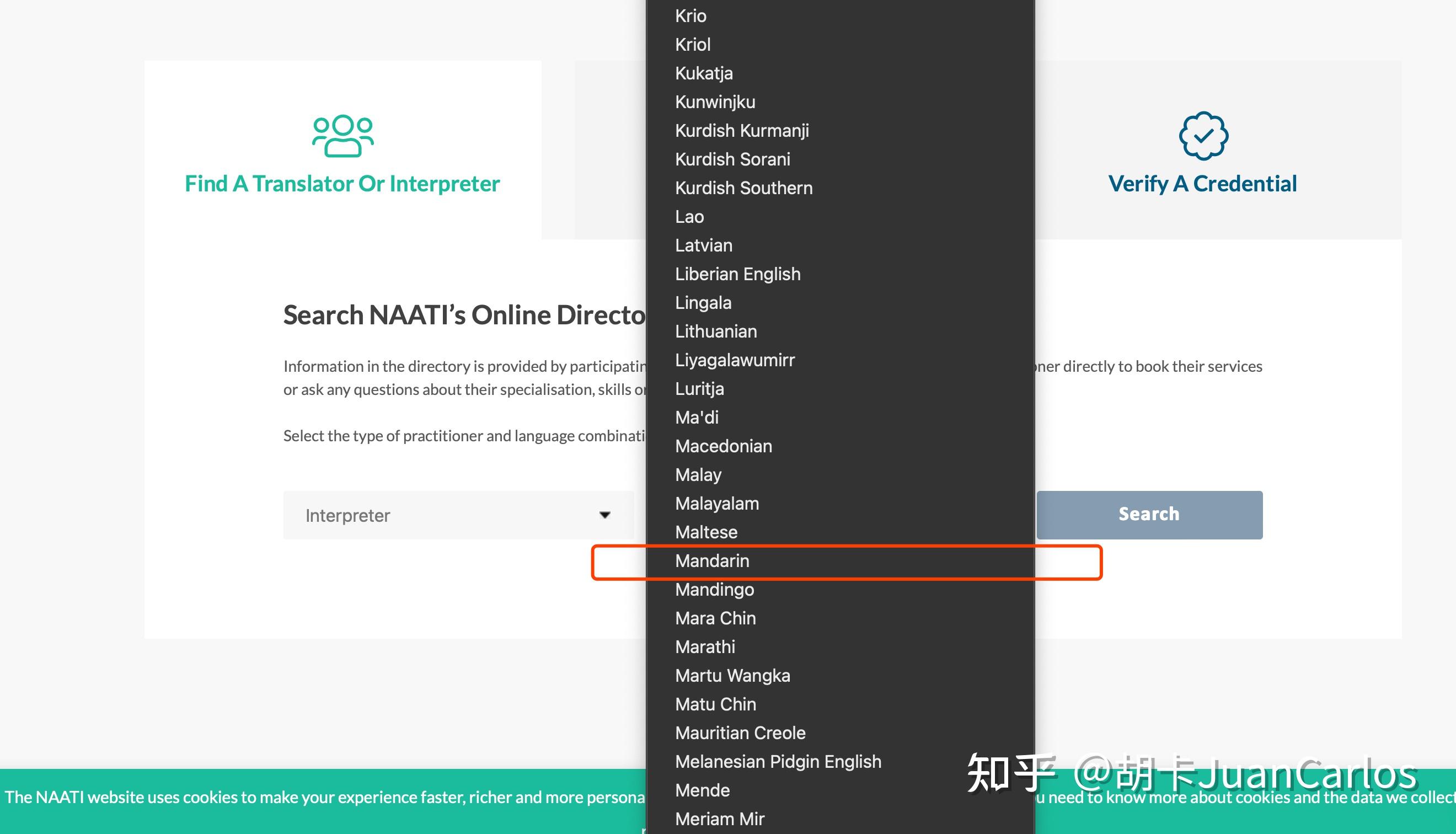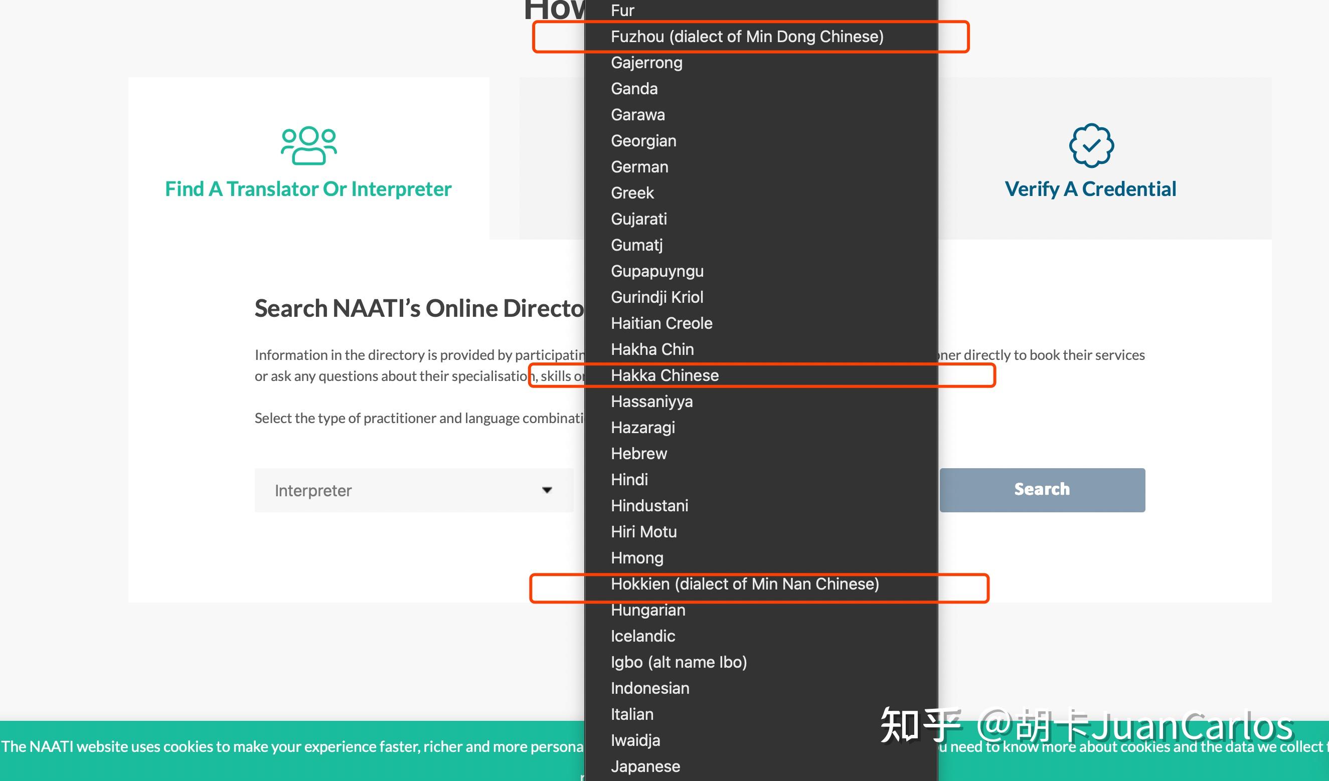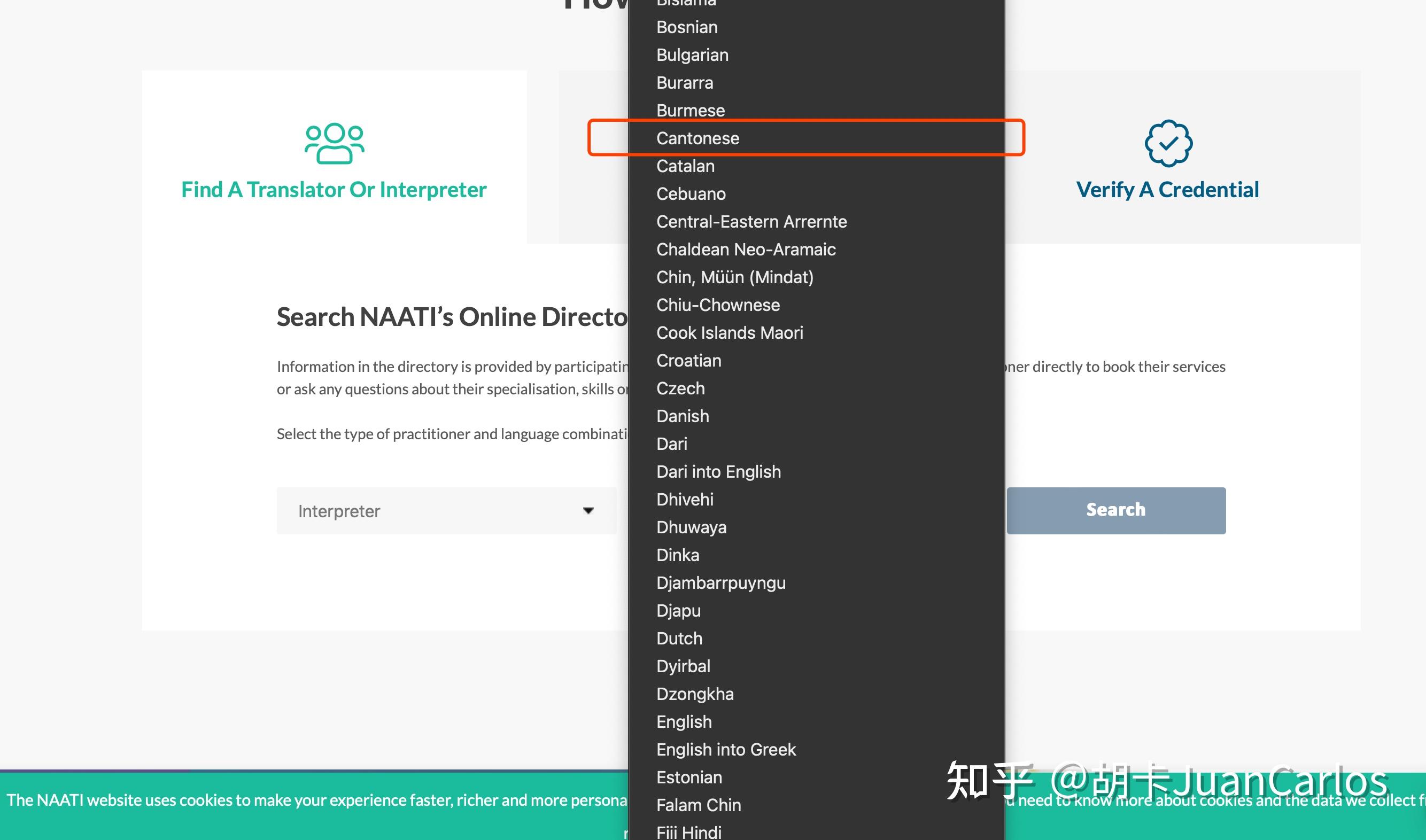 来,我们来澳大利亚翻译局找个口译员,看看都有哪些选项: