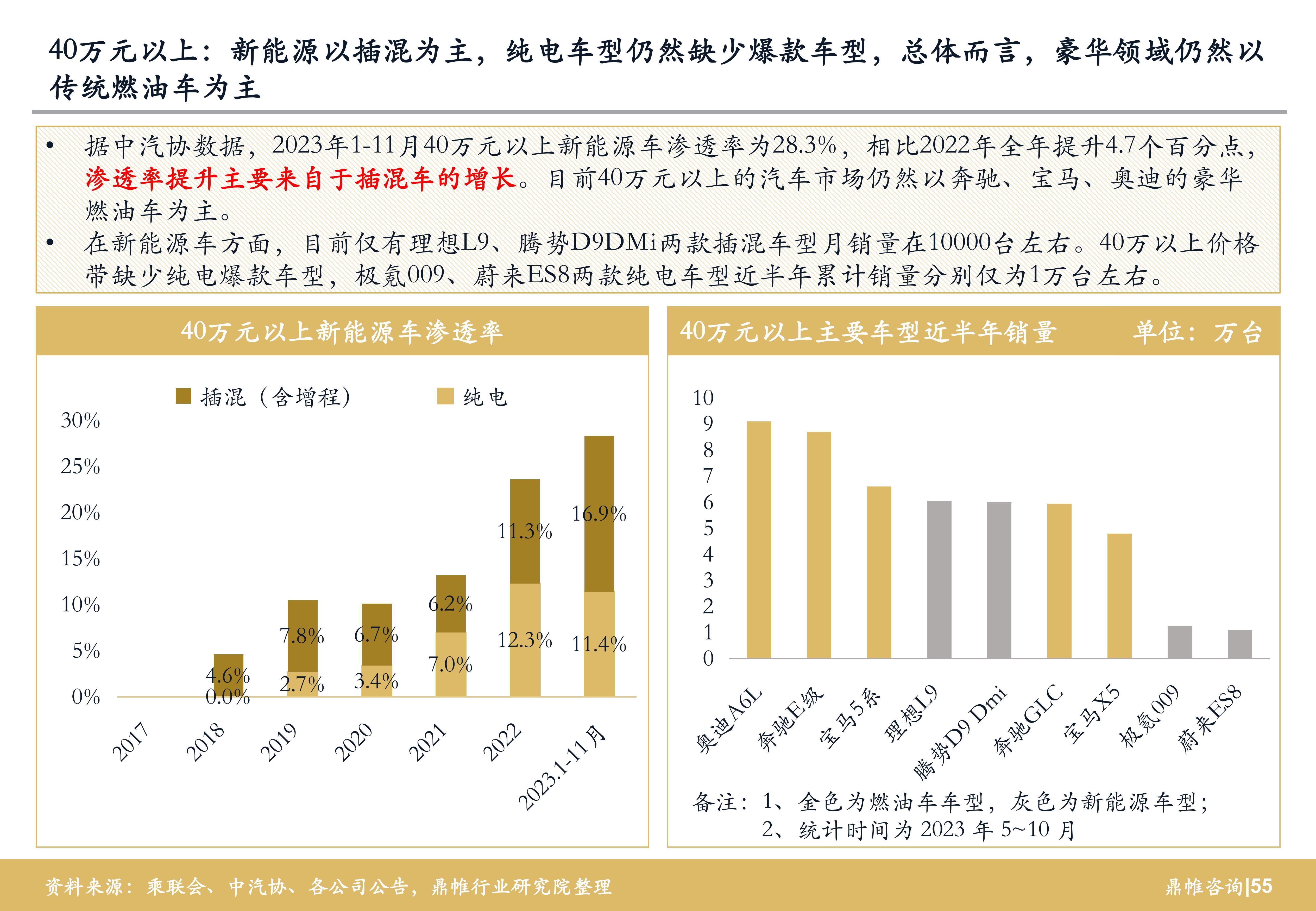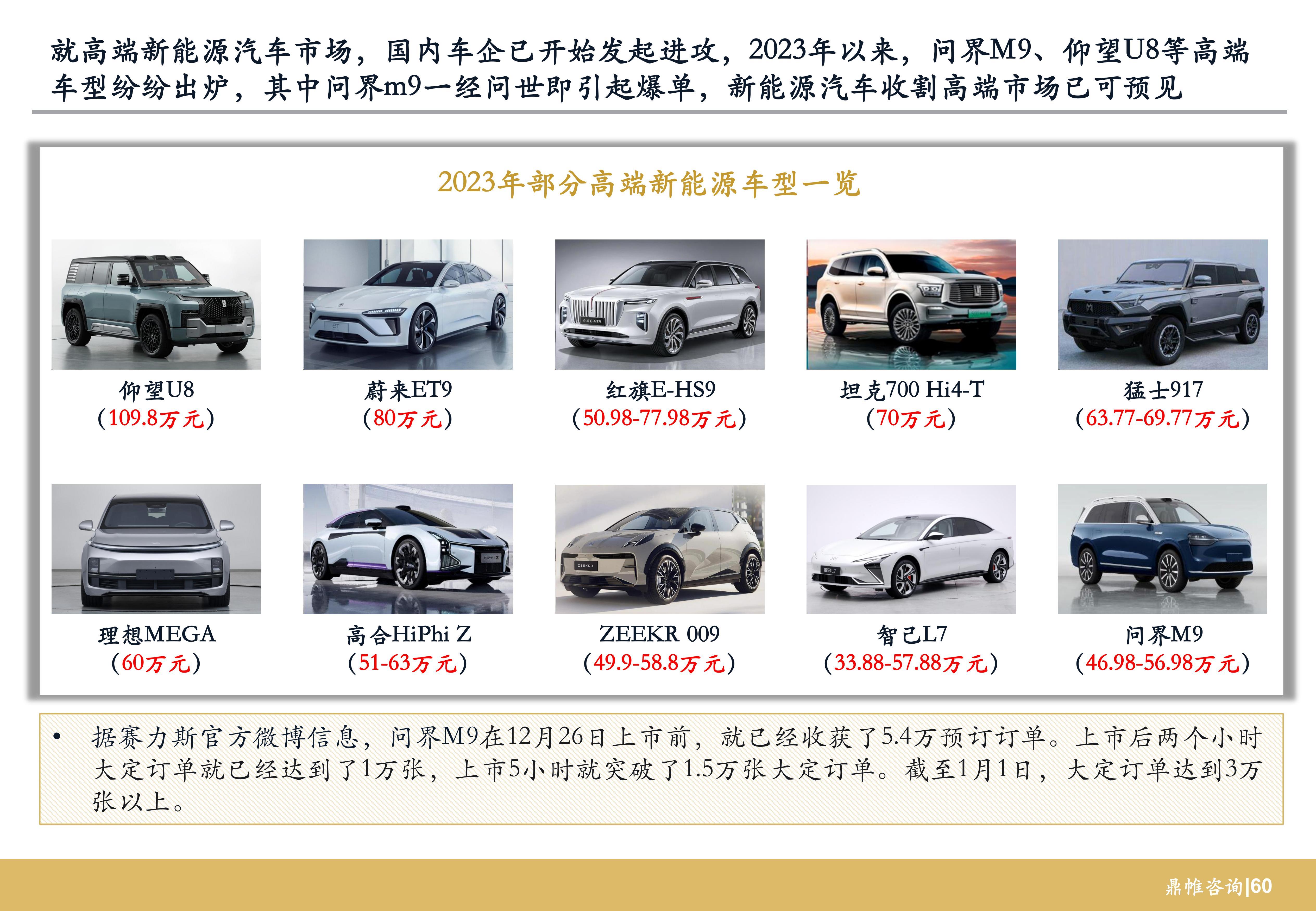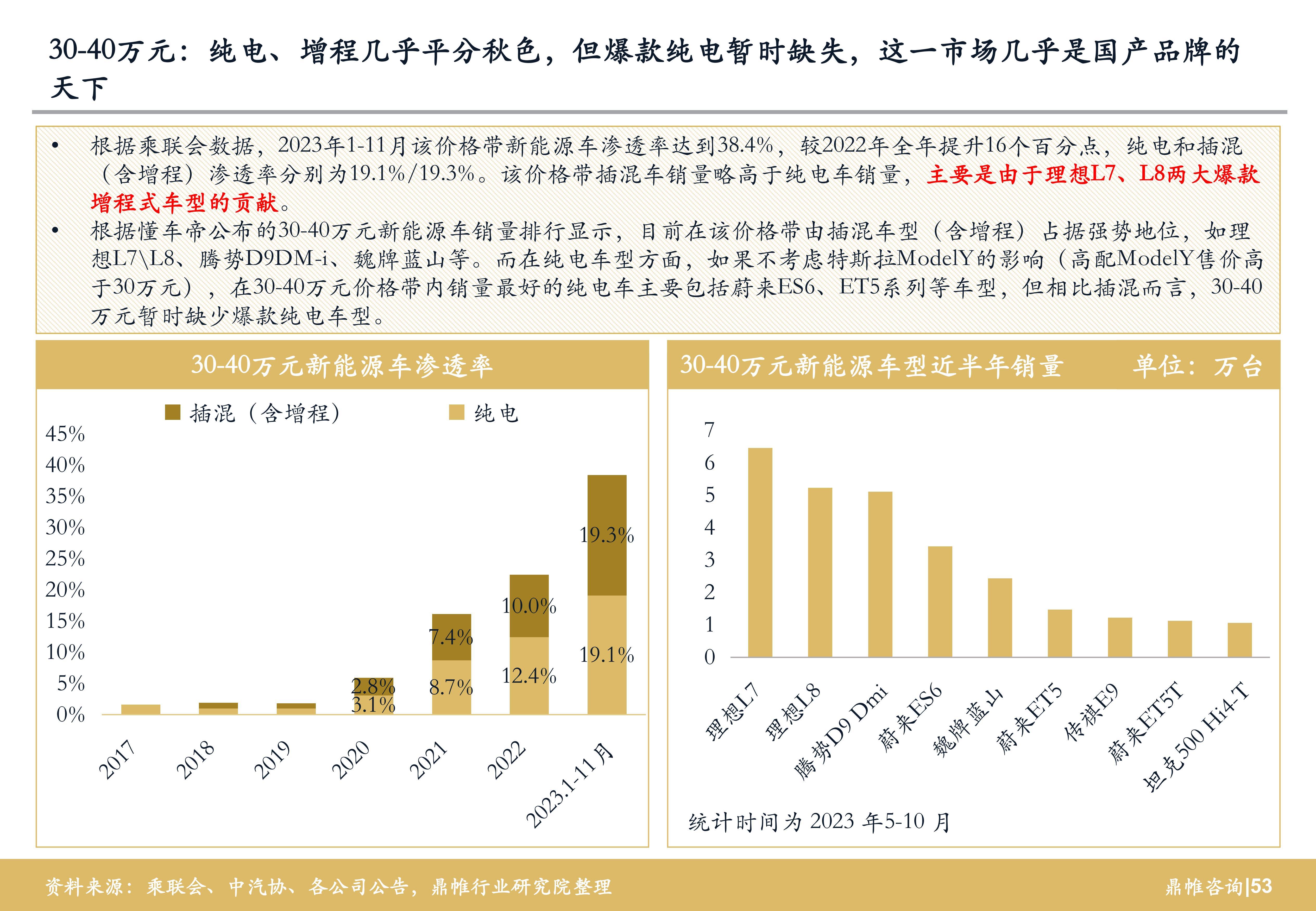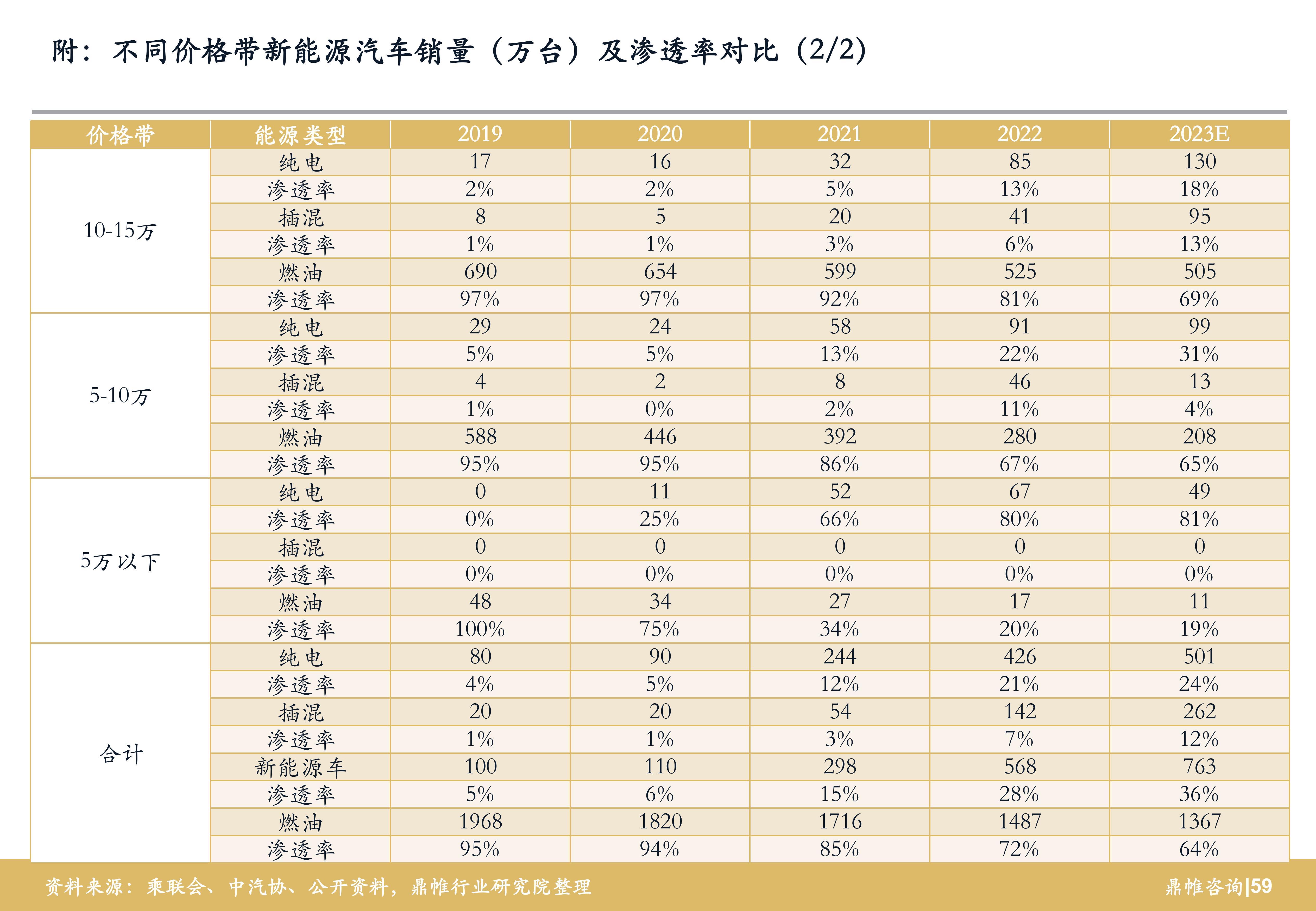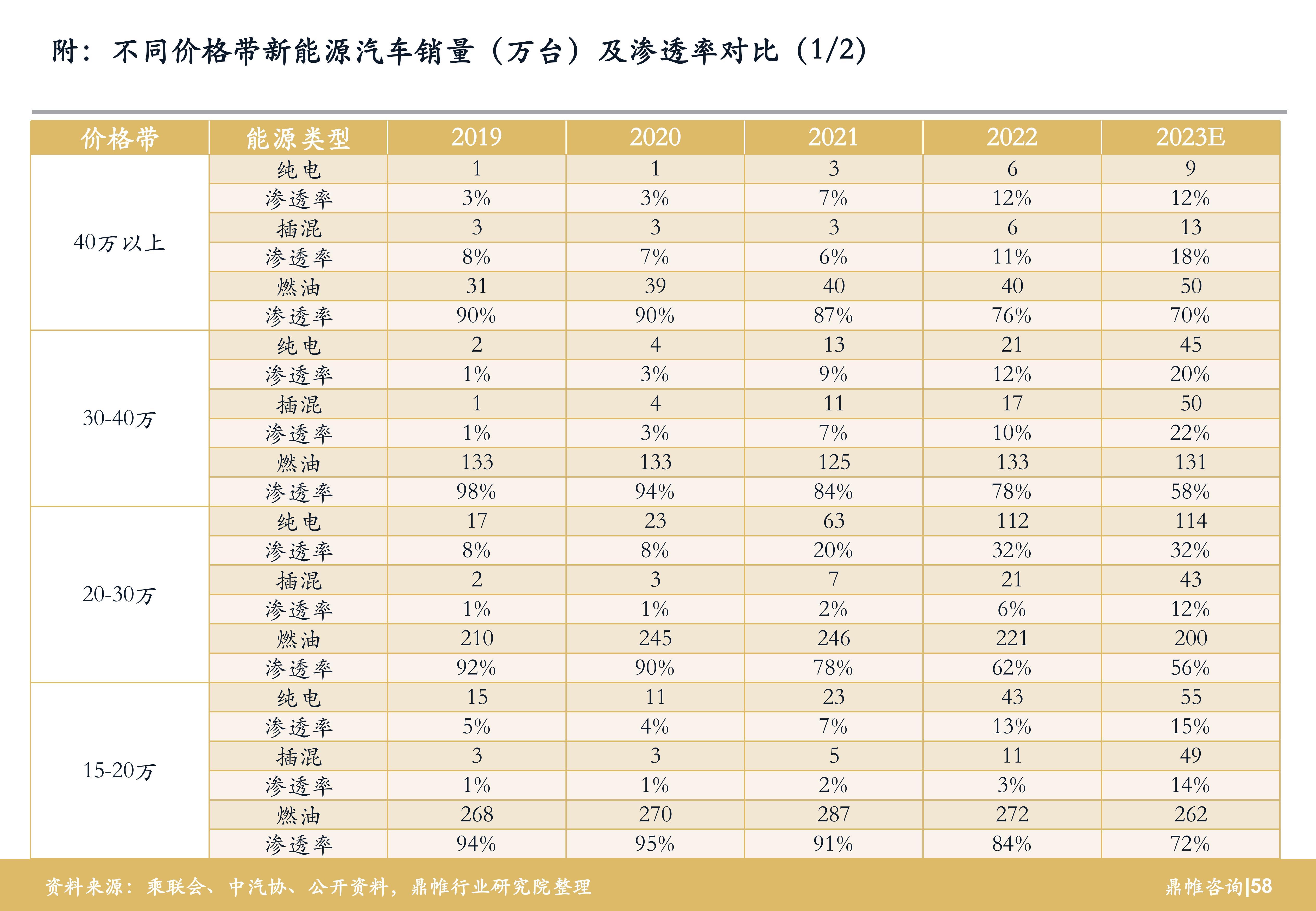 4. 按价格分类的角度看,新能源汽车在高端领域缺位严重,中国众多车企正在向新能源高端汽车发起最后总攻(我们期待网友戏称的“再不努力只能买BBA”)。