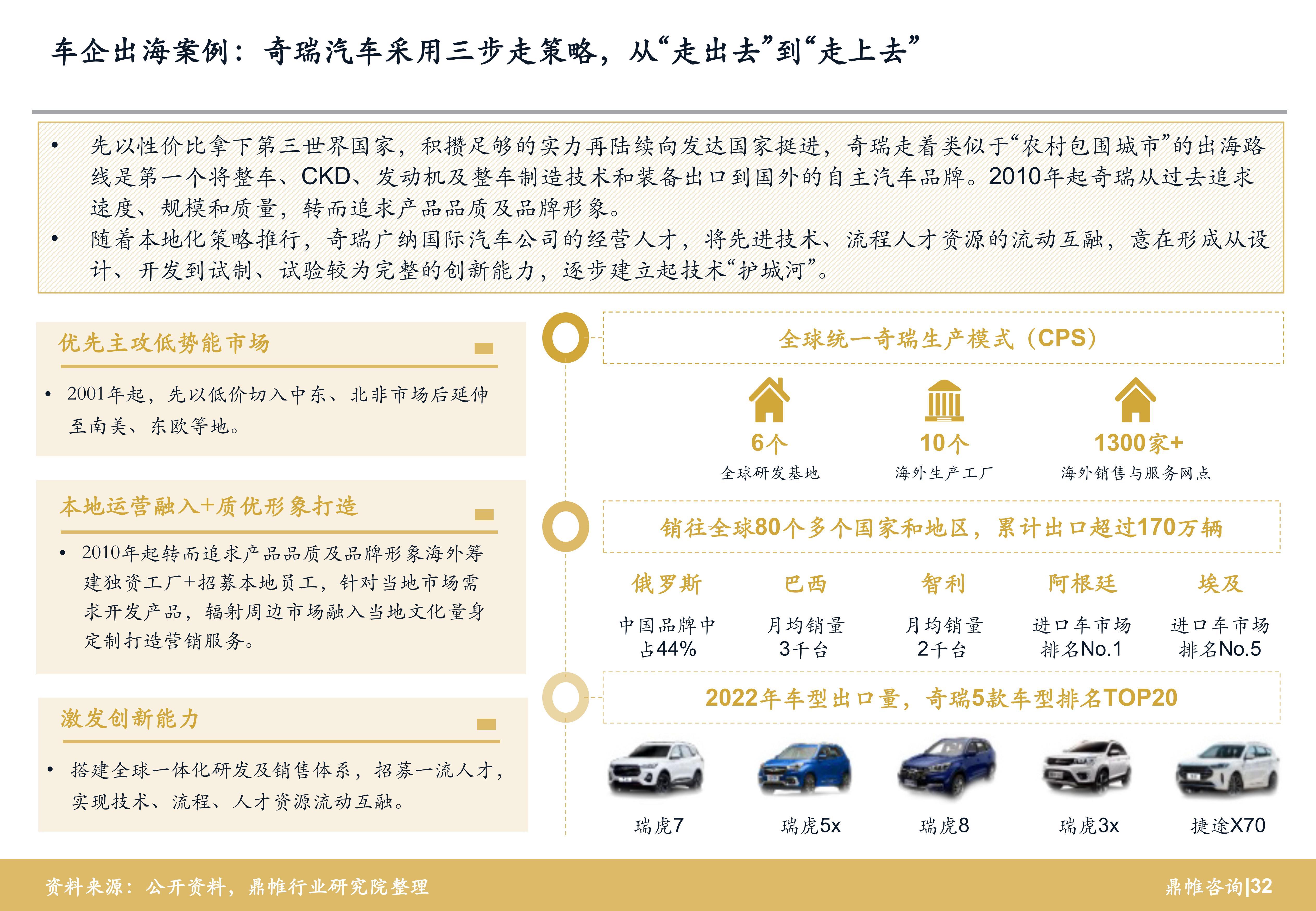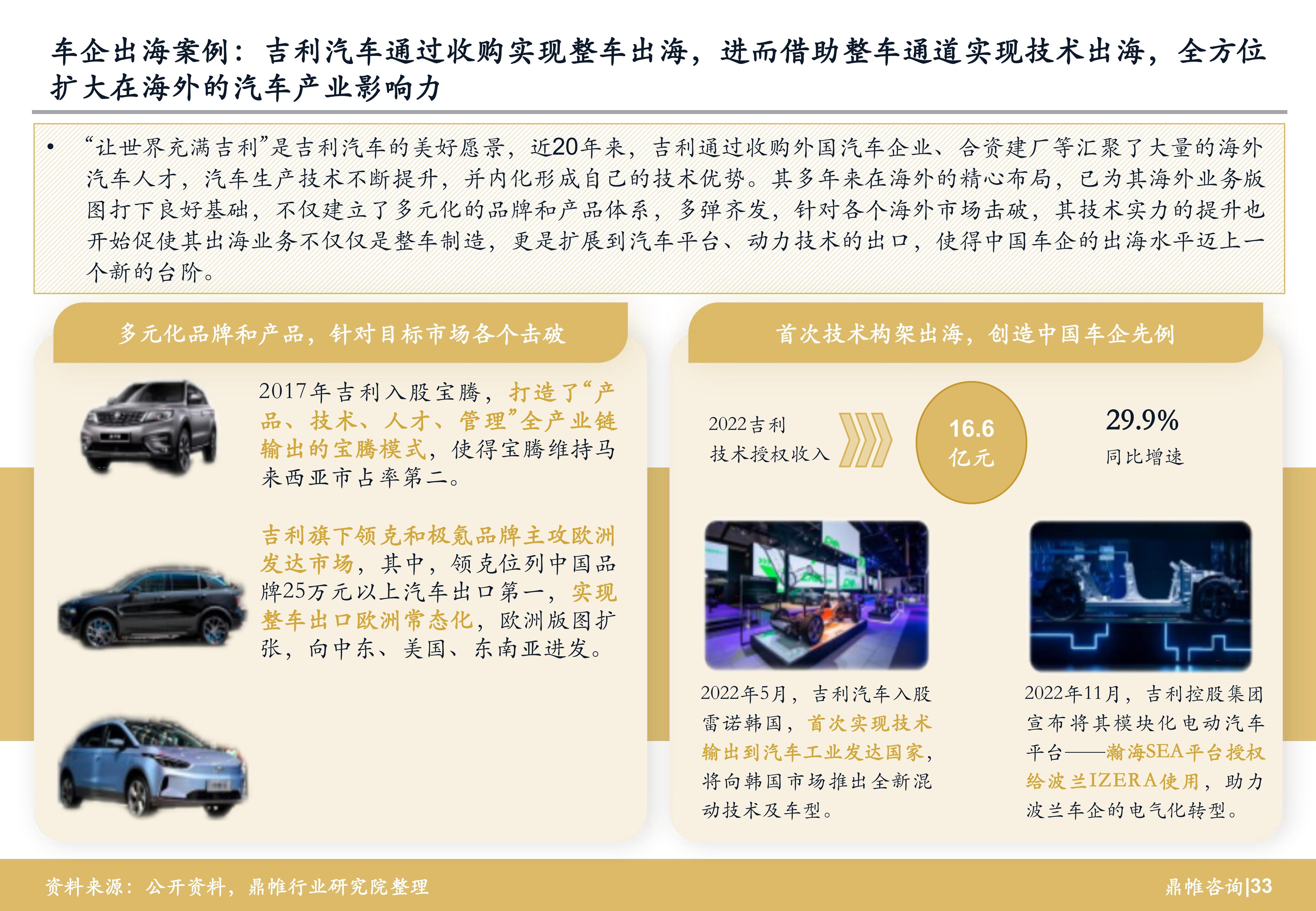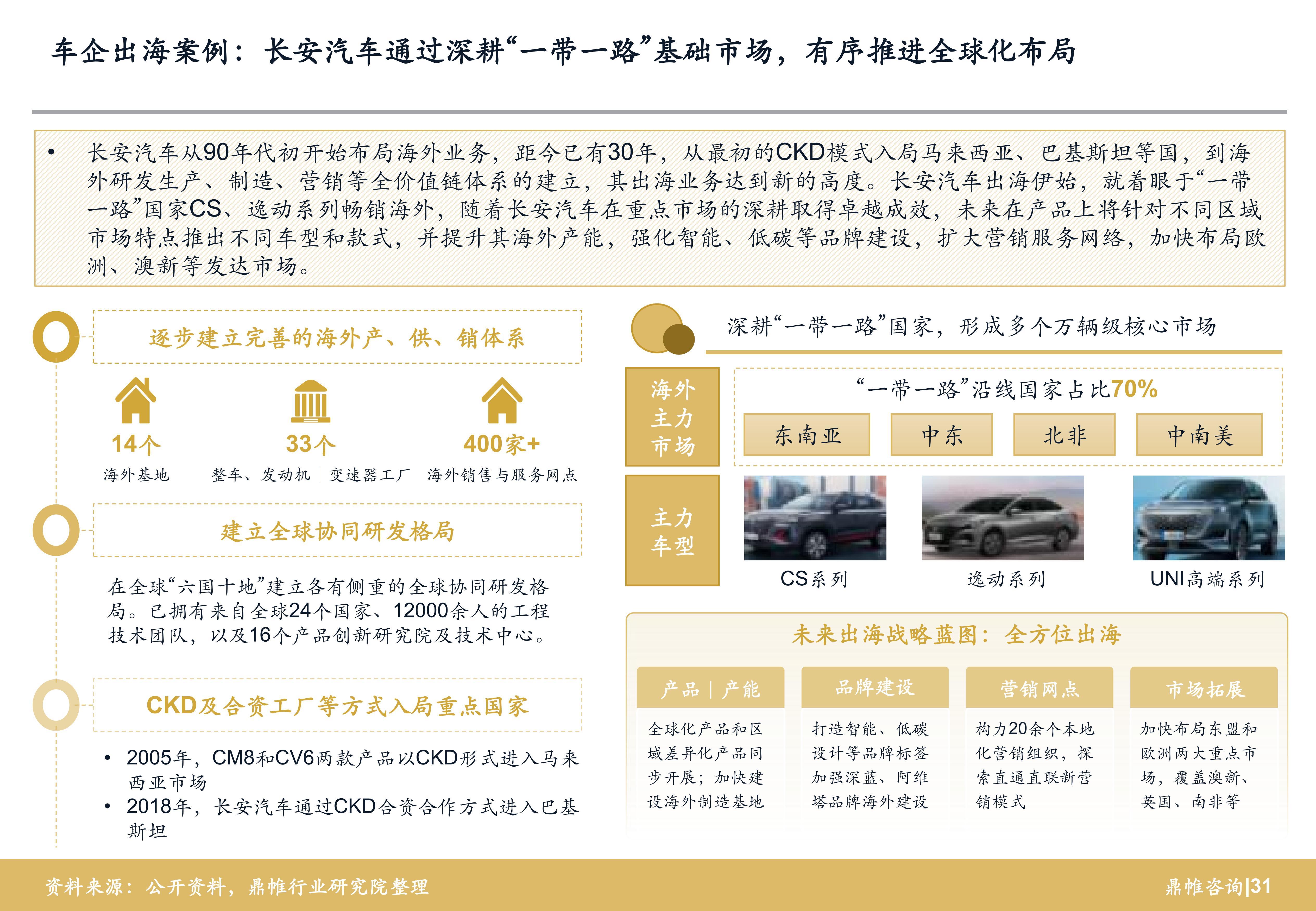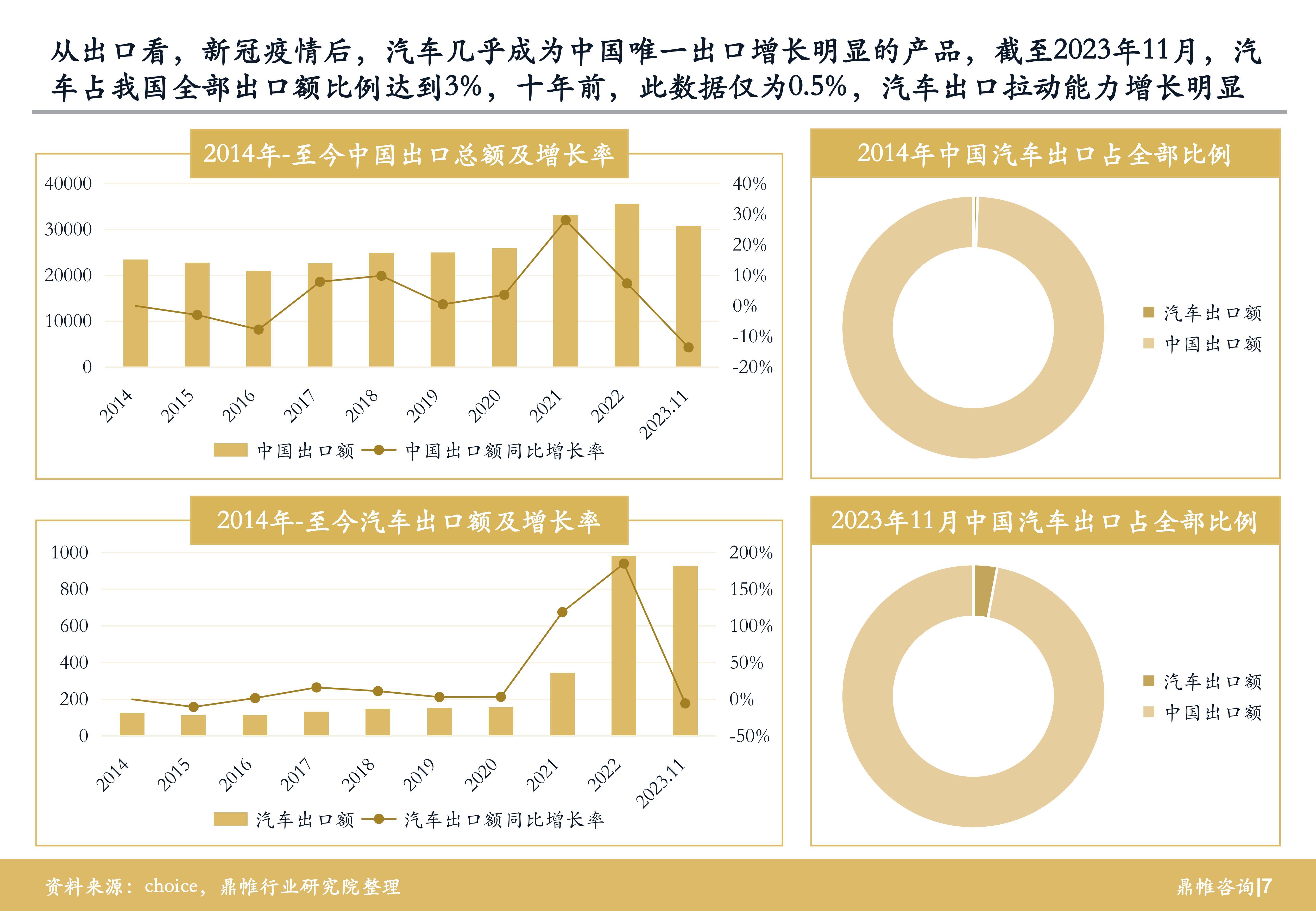 1. 近年来,中国汽车出口大幅增长,同时伴随国内汽车市场的逐渐饱和,政府顺势出台了系列鼓励中国车企出海政策,由此,中国车企拉开了出海布局的帷幕。