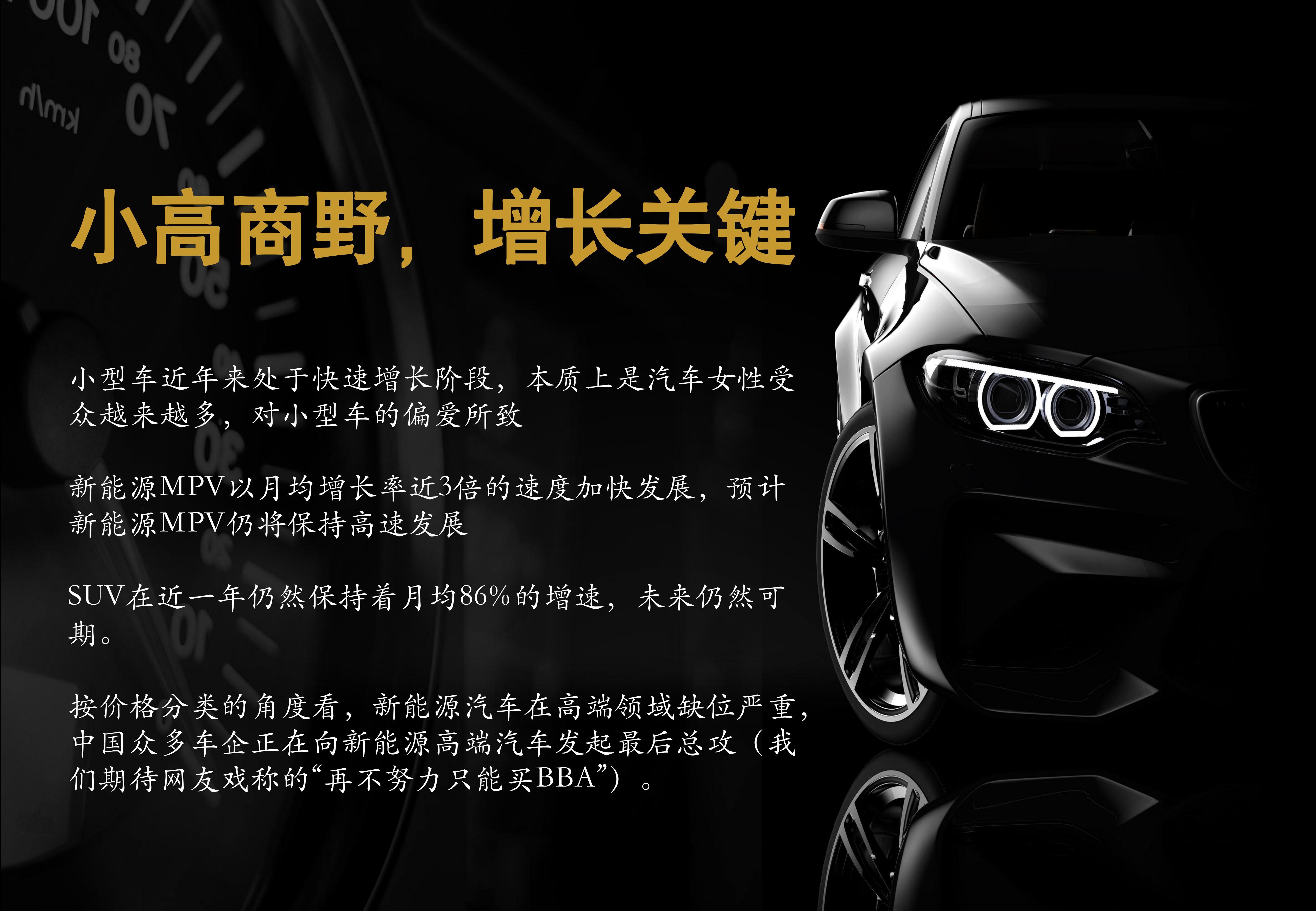 1. 小型车近年来处于快速增长阶段,本质上是汽车女性受众越来越多,对小型车的偏爱所致。