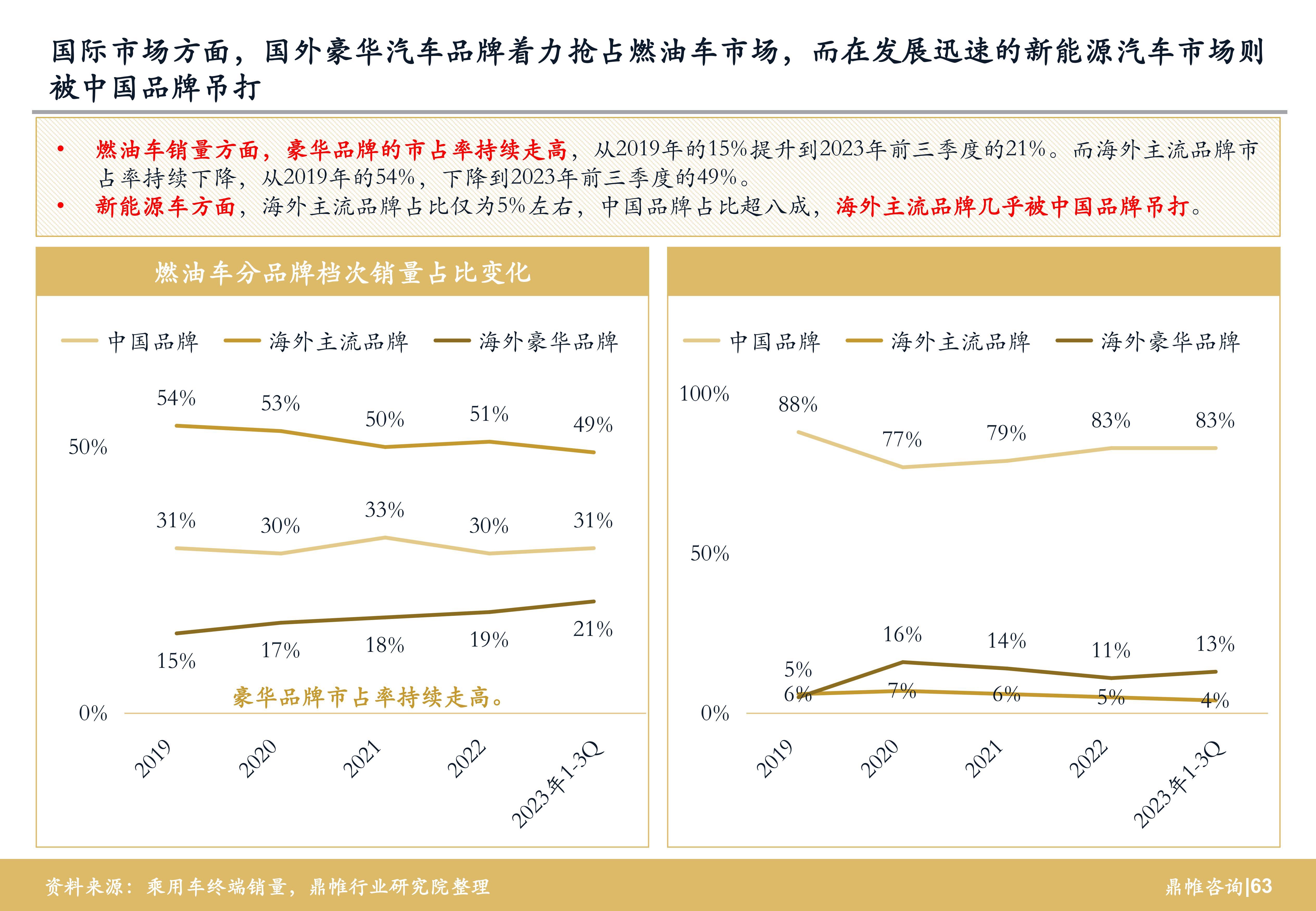 1. 面对新能源汽车的步步紧逼,传统燃油车仍在垂死挣扎,就当前全球市场来看,在燃油车领域曾风头一时无两的国外车企着力抢占豪华汽车市场,而在新能源市场面对中国汽车几无还手之力。