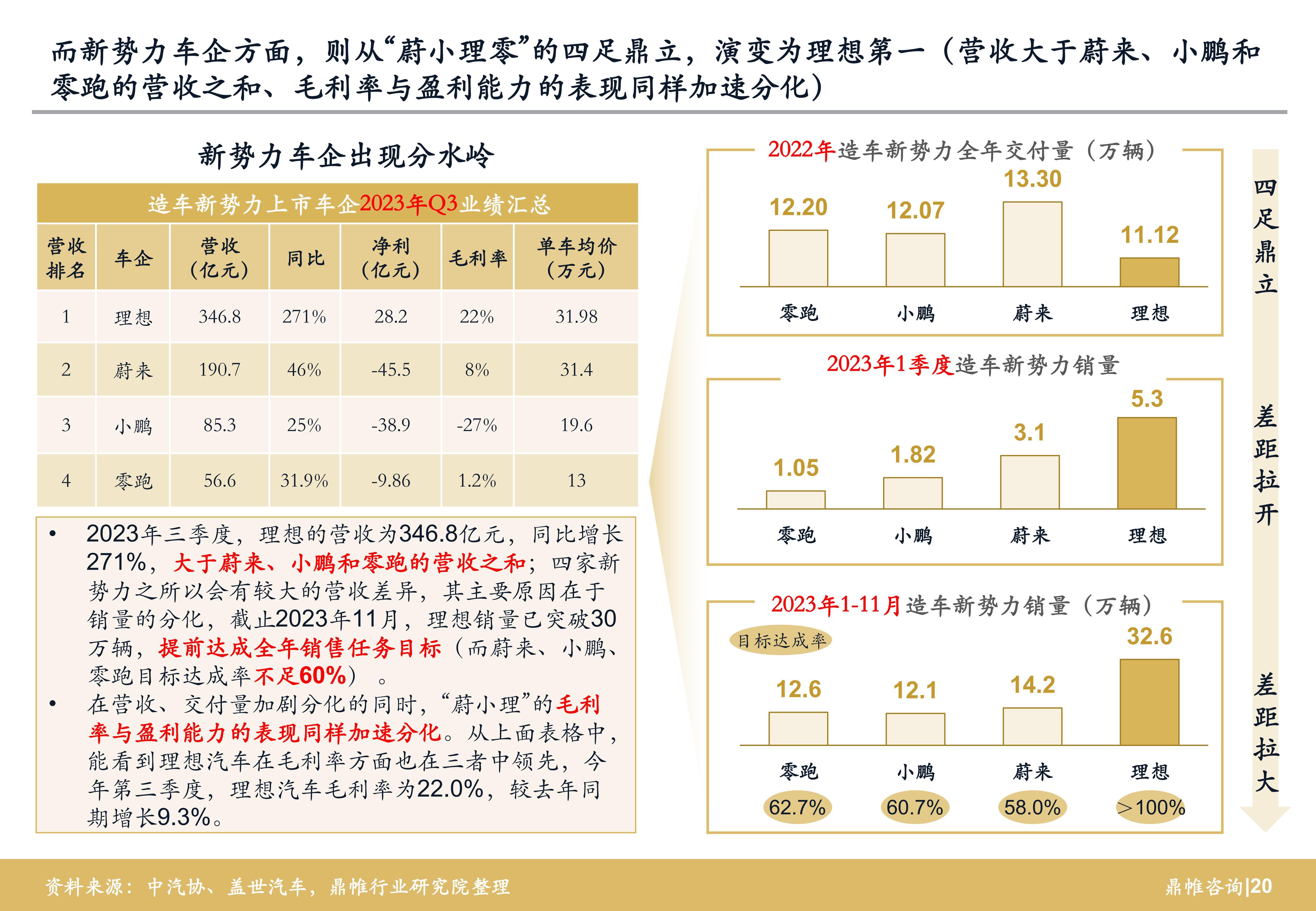 2. 新势力车企从“蔚小理零”四足鼎立的典型格局,逐步演变为理想独强