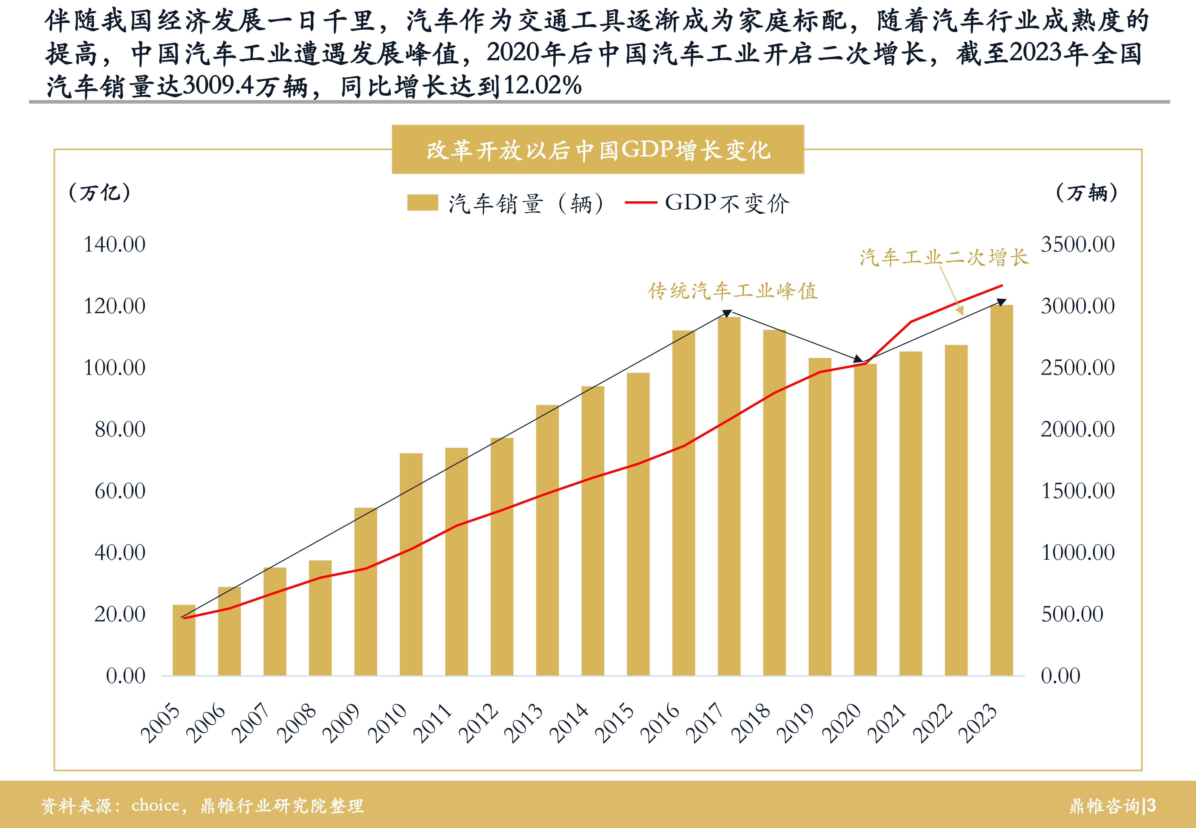 1. 改革开放以后,中国经济进入发展快车道,汽车工业同步发展,但随着传统汽车市场开始饱和,中国汽车产业触达天花板。