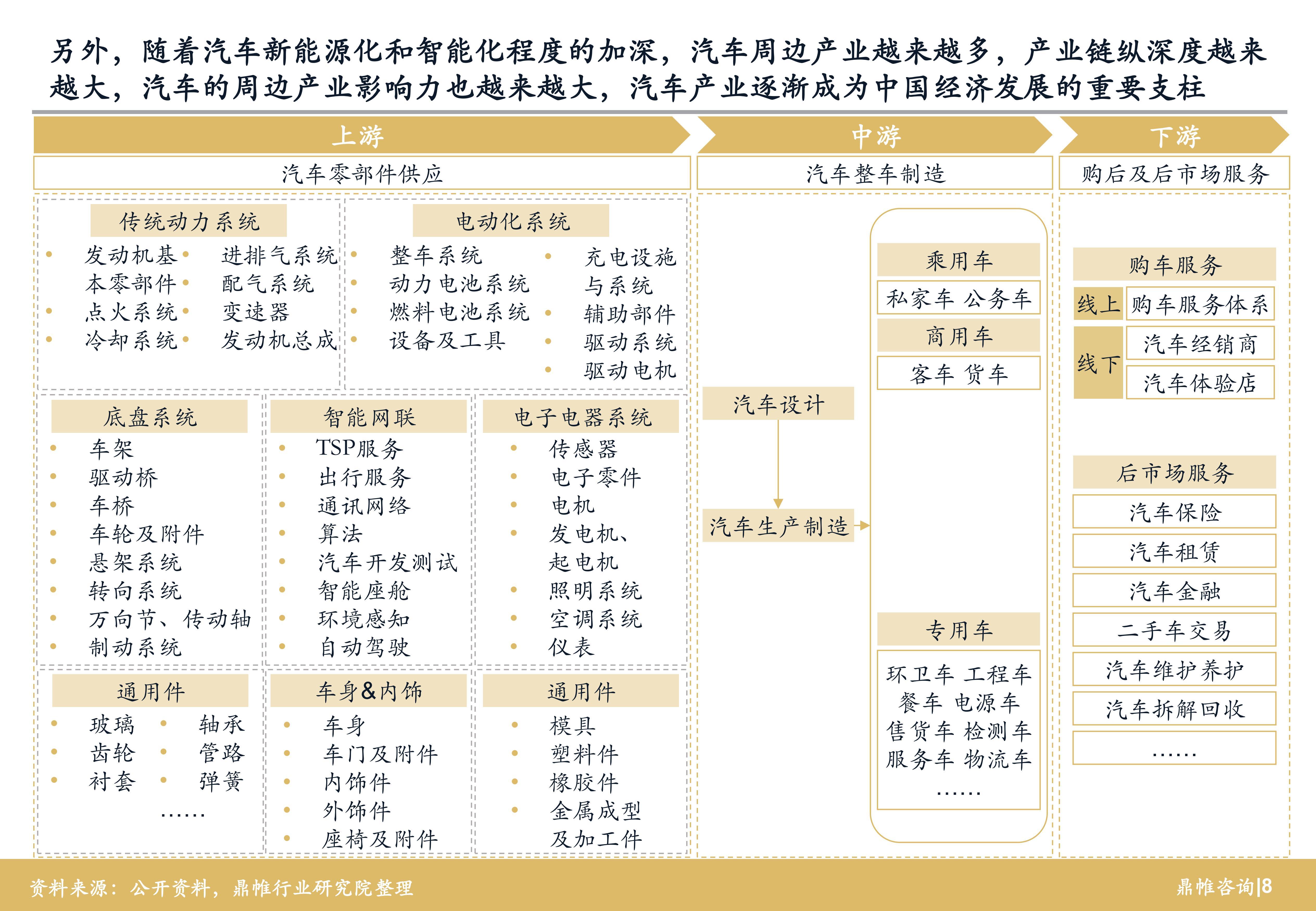 3. 同时汽车电动化和智能化进一步延伸了汽车产业链,汽车工业的周边产业影响范围同步扩大,汽车对国内经济的影响力与日俱增。