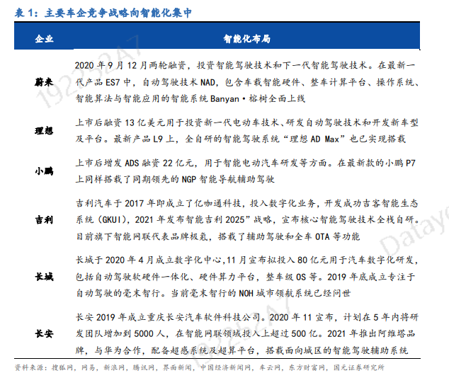 智能网联汽车为汽车差异\化竞争关键手段,持续创造投资机会