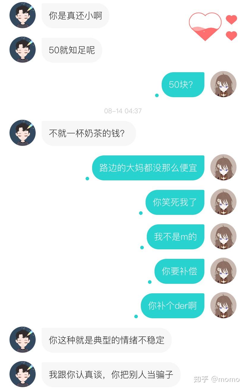 我心态还蛮好的,这样杀伐果断不养鱼的女孩子,我认为还挺好的。这一次,奶茶吃饭花了200。能体会那种相亲男的感觉。哈哈,他们应该比我惨。。