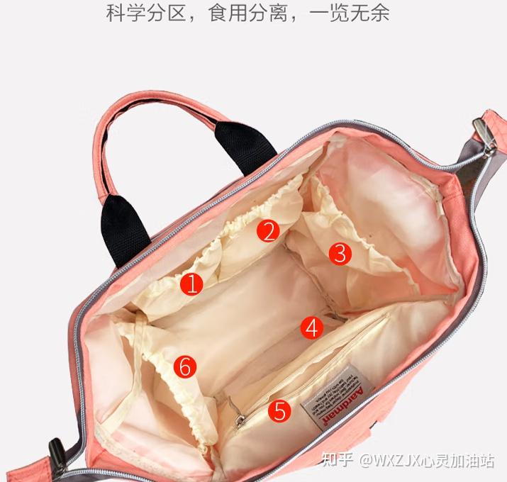 妈咪包多功能,大容量外出上班双肩包。做工精细,无异味。防水面料容量大。上开口设计视野开阔,拿取方便。侧边收纳纸巾带拉链,卫生干净。便携后开口防盗拉链口。内里设计多个分隔置物袋,放置宝宝不同用品衣物。前开口三个独立带保温的奶瓶袋,特别贴心配有单独钥匙链扣。三种携带方式(肩背、手提、车挂),很方便。