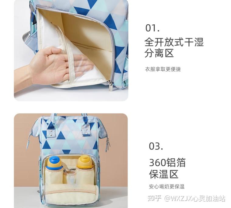 有了宝宝,带宝宝外出是生活日常。十月结晶的这款妈咪包设计合理,干湿分离,有很多分区,空间很大,可以背也可以挂在推车上,带娃出门非常方便,性价比高。生完宝宝出门好多东西都要带,大包小包一大堆,入手妈咪包,方便,一个包全搞定,分层多,可以放很多小东西,口水巾啊,湿巾,干纸巾,纸尿裤,手机,钱包,小毯子,奶瓶奶粉,真的巨能装,超好用。让带娃外出就像在家那样方便幸福。