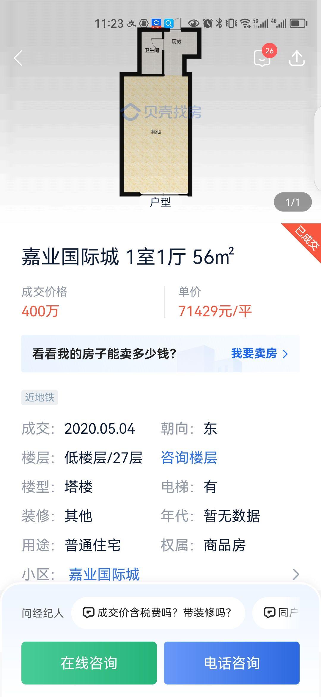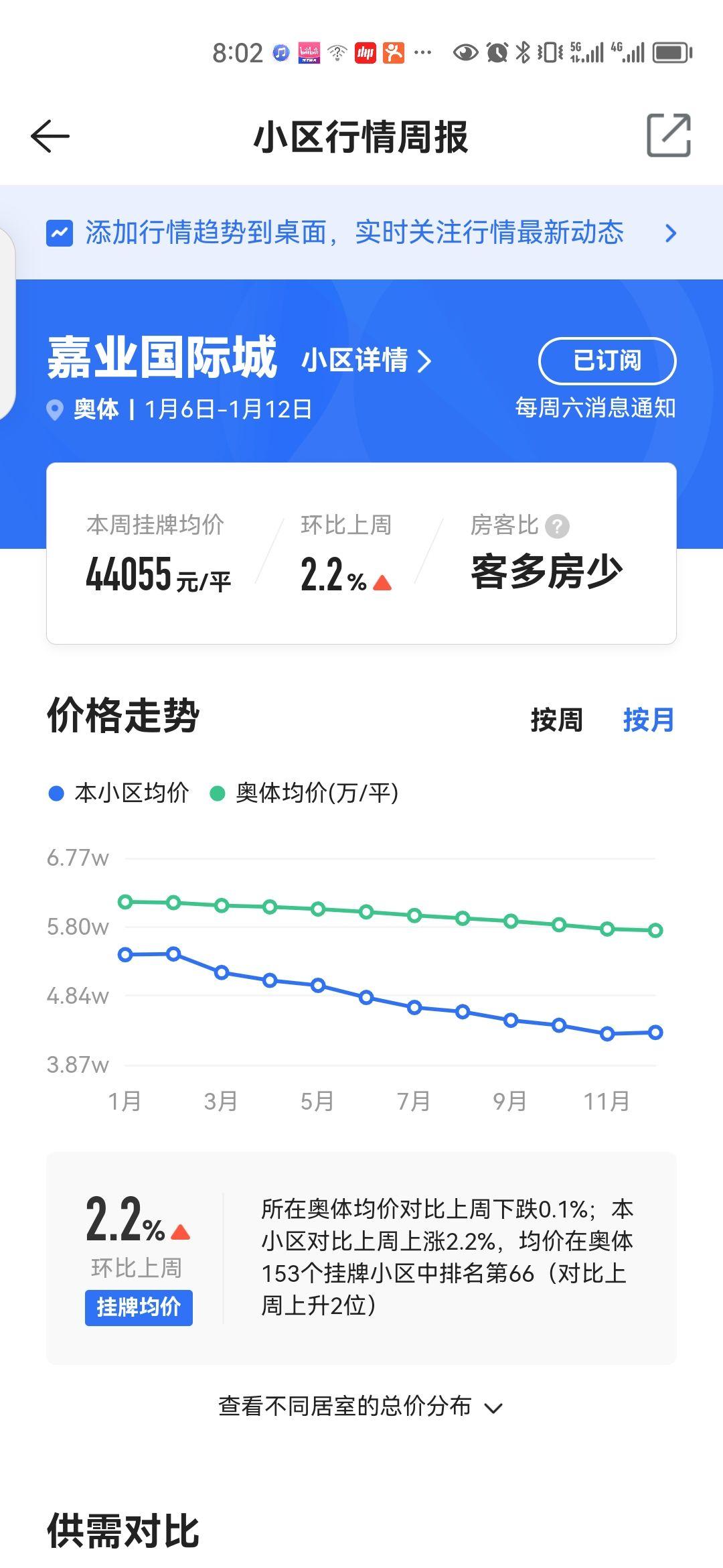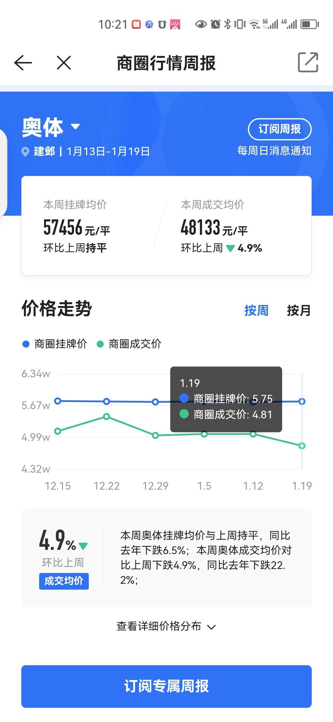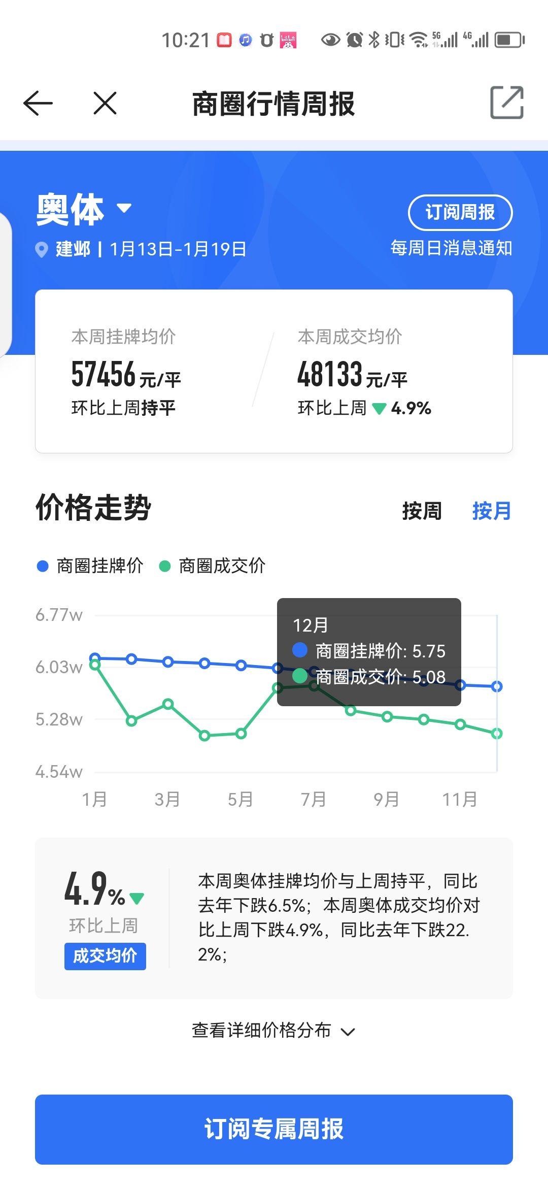 从贝壳的数据能看到,奥体的房价去年是普跌的。无论挂牌成交都在跌,尤其是成交,普跌了1万,从6直接干到了5。