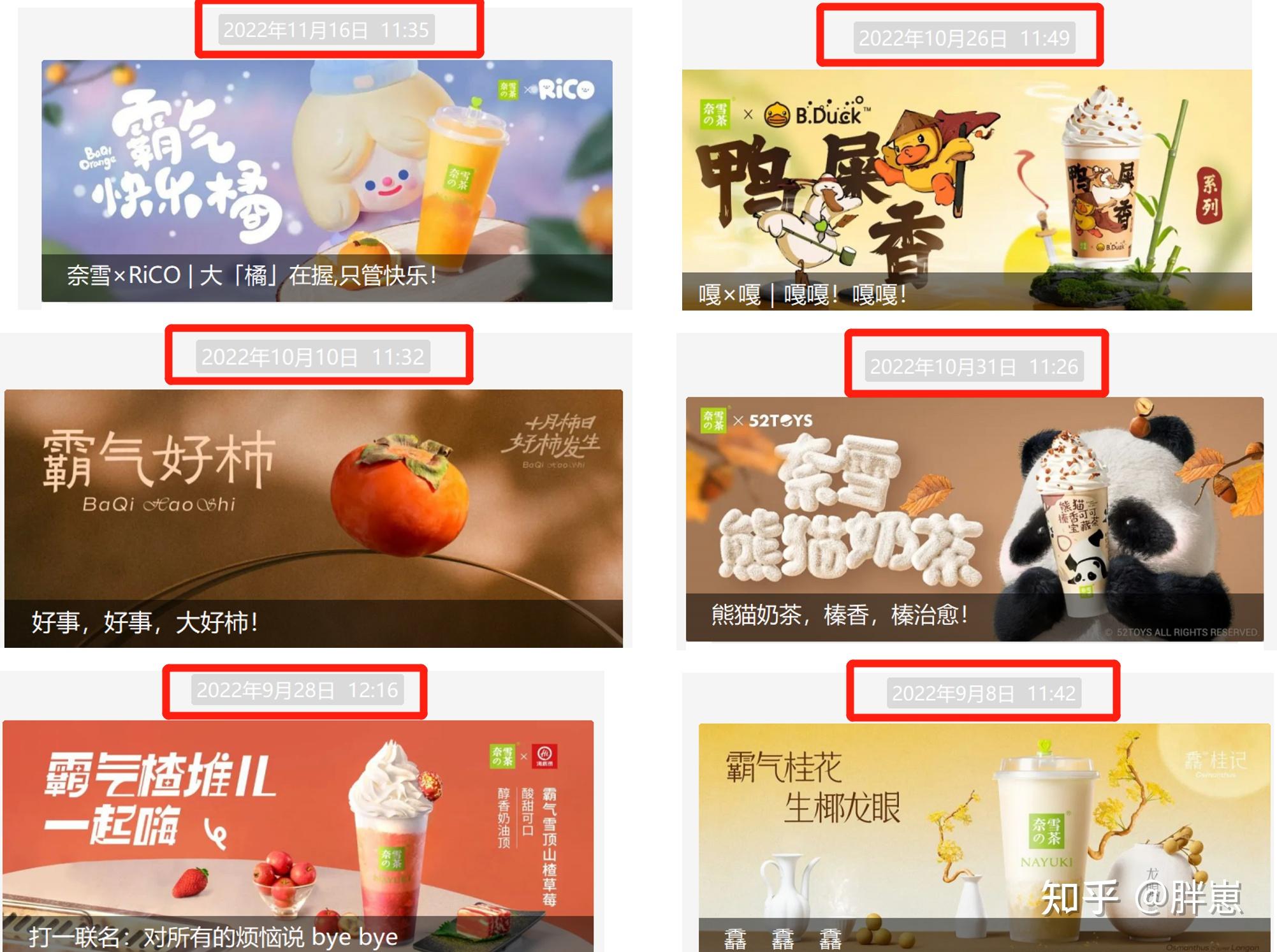 那次谈话,我还得知,奈雪主张“月月出新品”。我看了下公号,现在应该也还在坚持这个策略,但创意又不是月经,怎么可能每个月都有。一直想“年轻”的奈雪,变成了一直走“少女感”的女明星(不影射,所以可随意代入),只能让人感受到硬折腾出的疲惫。