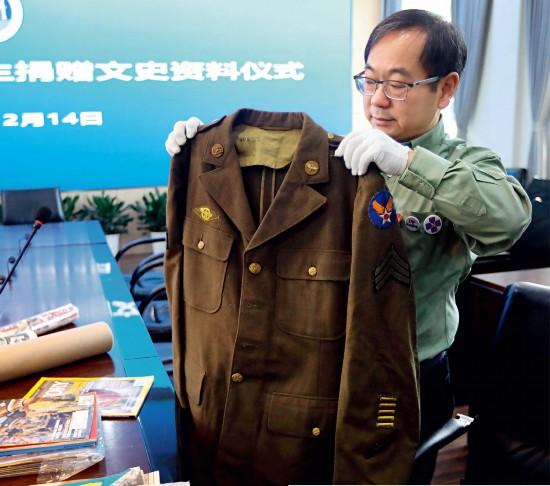 2018年,鲁照宁在南京抗日航空烈士纪念馆捐赠飞行员服装等抗战文物。