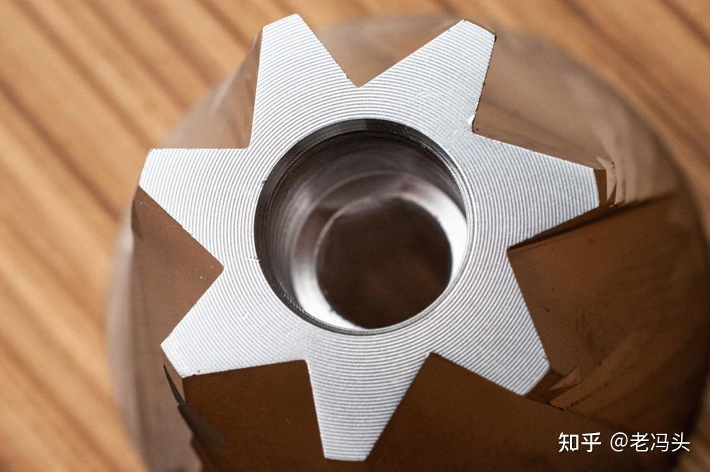 K6在磨芯和磨盘,使用420不锈钢材质CNC数控加工,洛氏硬度57,磨芯使用48毫米的7角刀牙设计。