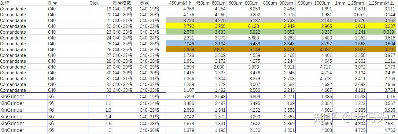 一些测试结果,并依据数据总结了对C40调整的研磨参照。