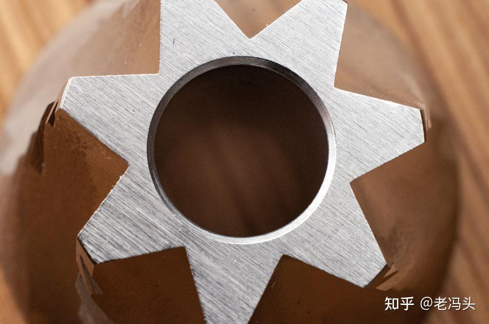 C40的磨芯则采用不锈钢渗氮工艺,刀头的底座上有激光刻子,金属呈现细珠光体贝壳状条纹。