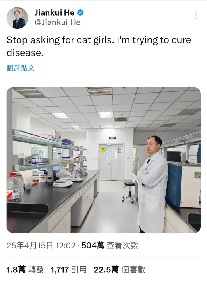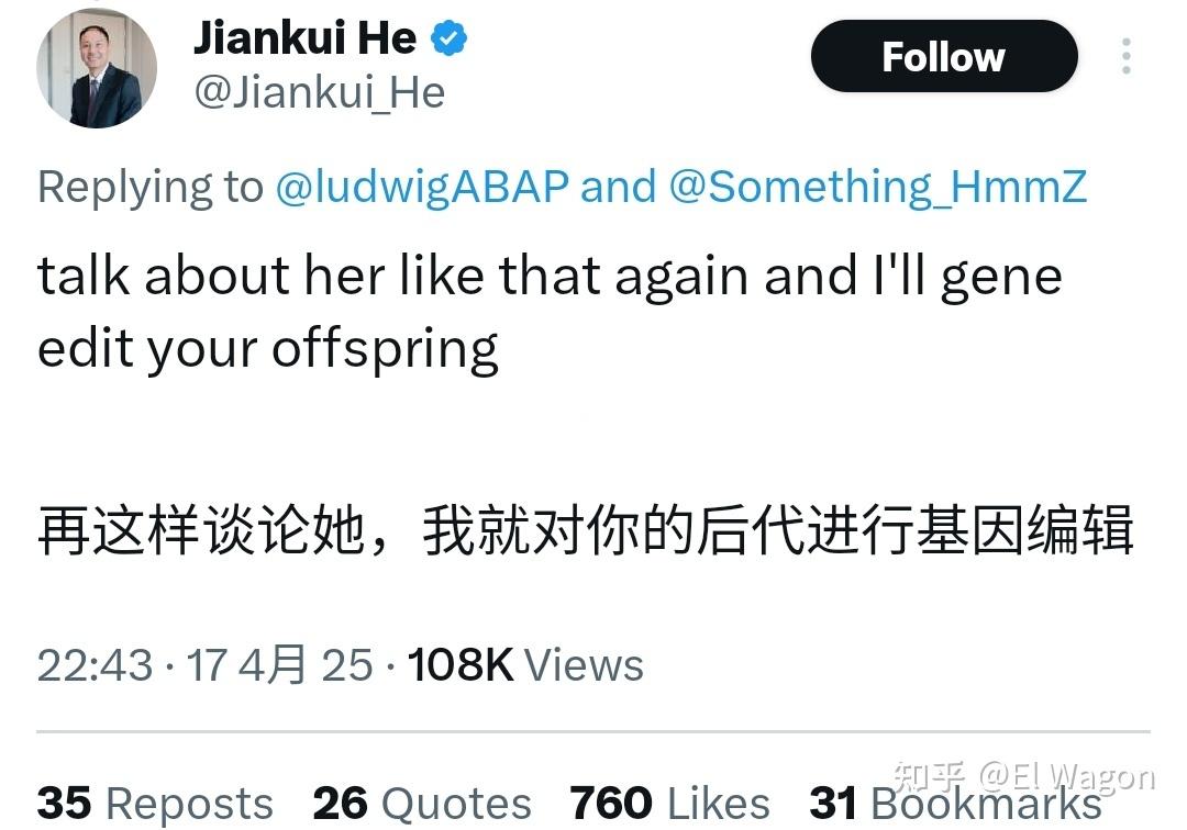 贺建奎是X上面最有海外影响力的中国籍创作者之一。