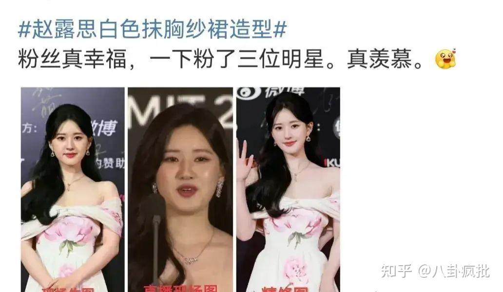 这一套好看在哪?臃肿繁琐不够轻盈,还不如穿一套公主裙呢。还有拍照的时候老是侧着脸,因为脸颊的折叠度不够,侧面会被拍成正面,脸颊上全是肉,会显得脸大。这也是为什么包子脸比较上镜的缘故。明明脸很小,老是侧着脸拍照,看得我心梗。还有进入娱乐圈多少年了,该锻炼身材了,赵露思胖了都被粉丝骂成狗了,想要事业上升必须卷起来啊,脸上那么多肉还不知道锻炼身体,进入娱乐圈这么多年了,就看见你锻炼过一次。