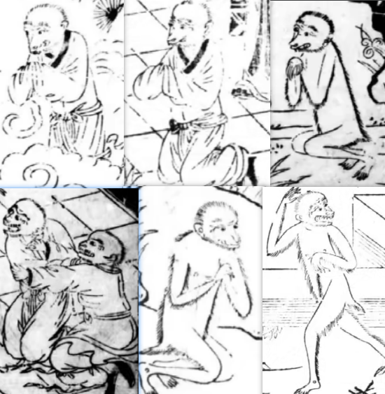 祖师笑道:“你身躯虽是鄙陋,却像个食松果的猢狲。祖师道:‘你虽然像人,却比人少腮。’原来那猴子孤拐面,凹脸尖嘴……