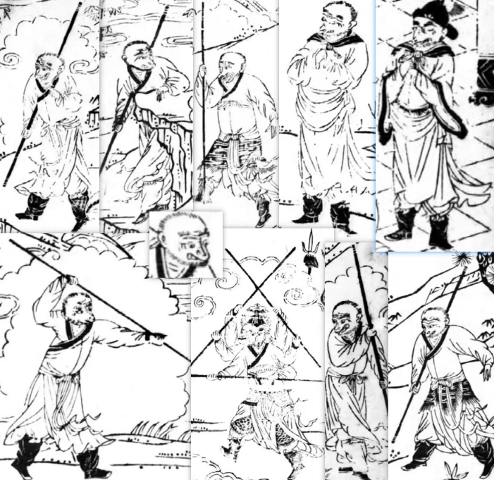 僧官道:“怎的模样?”道人道:“是个圆眼睛,查耳朵,满面毛,雷公嘴。手执一根棍子,咬牙恨恨的,要寻人打哩。”