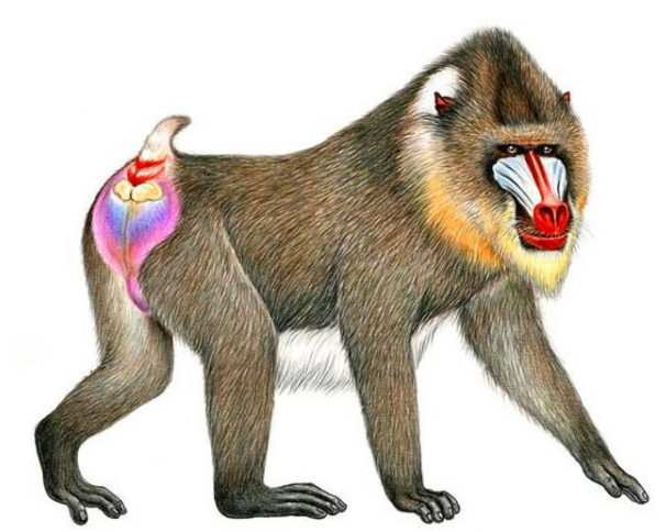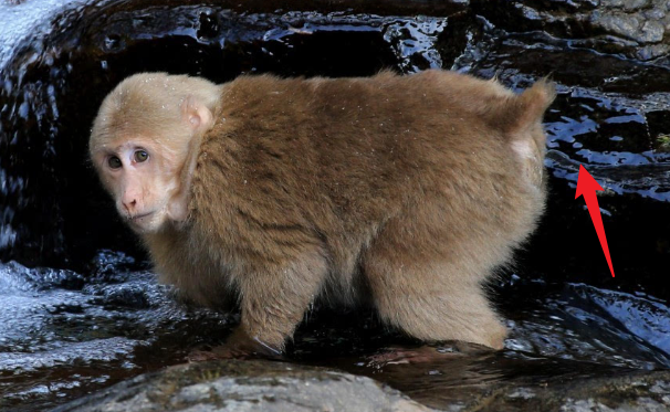 首先看山魈的尾巴,是不是和上图一模一样,你说它有吧,又好像没有,说没有吧,又好像有: