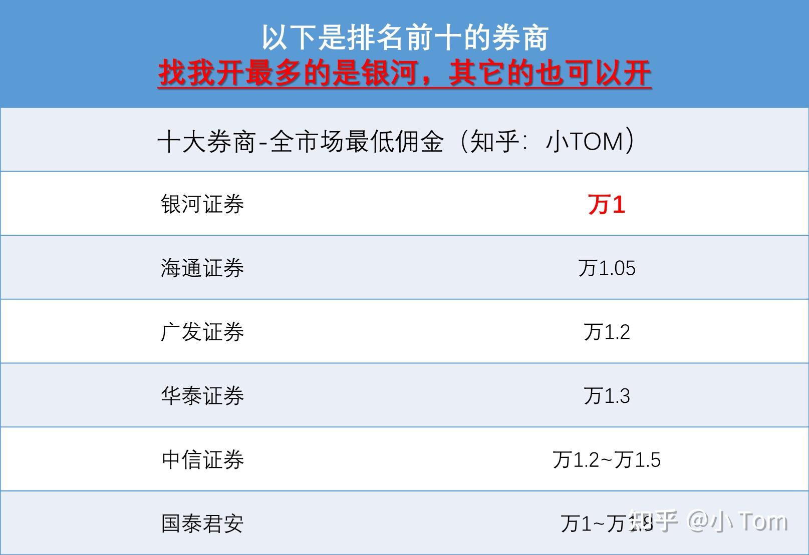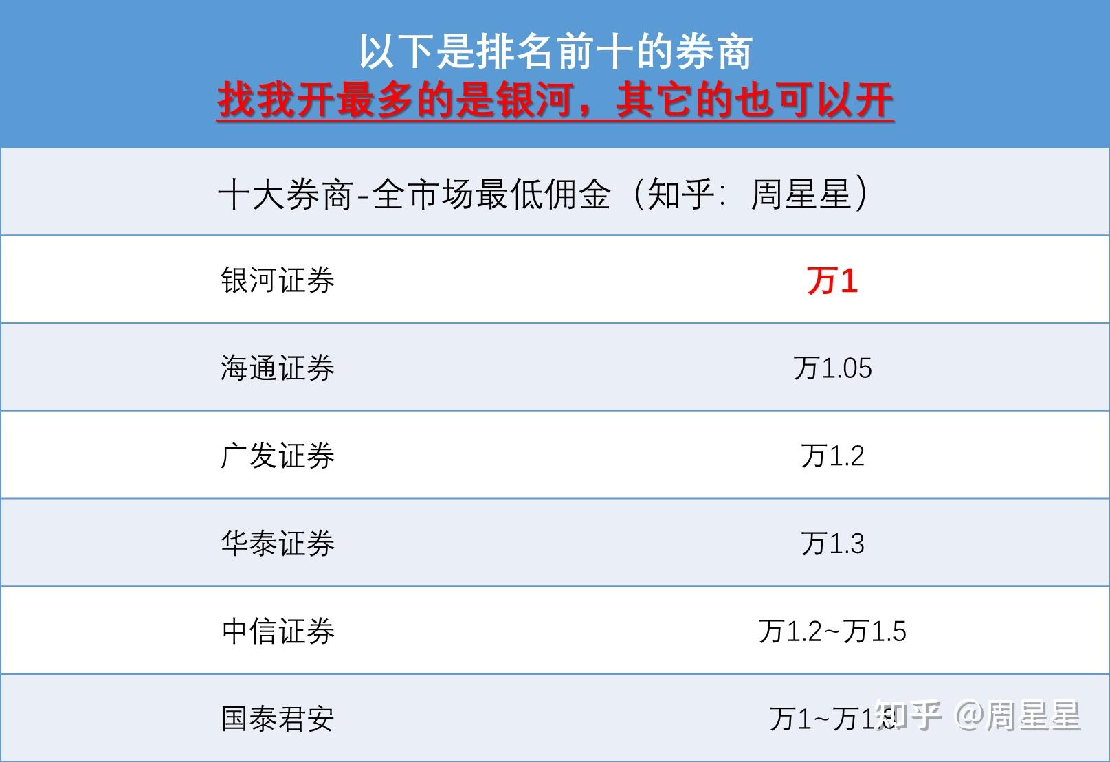 目前只要提前联系证券公司的客户经理,先提前约定费率开户,都有可能开万一的账户,根据我统计的全国48家主要上市券商费率,综合比较得出(如下图),供参考 :