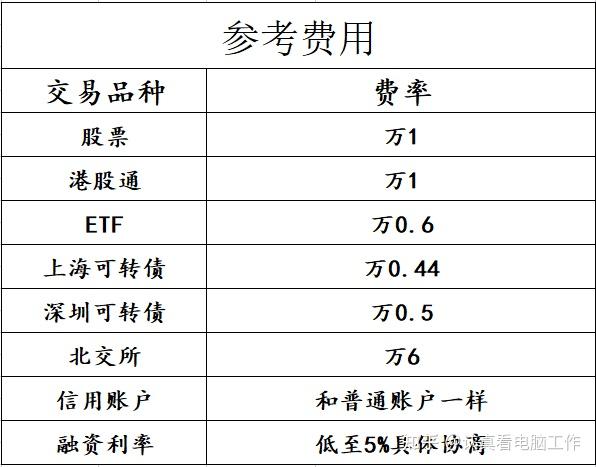交易避免不了的就是佣金了,以下有个表格是韦彤小姐姐在券商这么多年,总结的算是券商非常低的一个标准,可以用作参考,这边都是全佣哦。