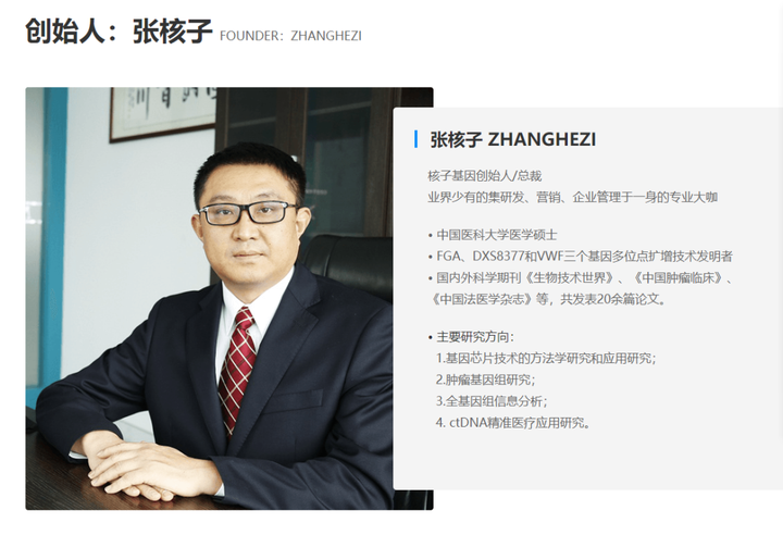 而据现场核子基因该公司的发展历程栏介绍,核子基因创始人张核子,其父亲为一名普通中学教师,因希望孩子成为科学家而为其取名张核子。