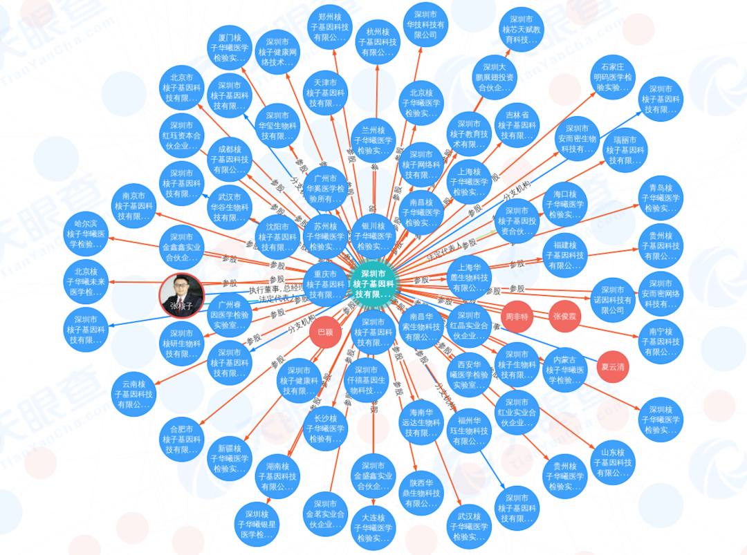 天眼查显示,张核子共在20家公司担任法人,包括核子基因、深圳市核子生物科技有限公司、成都核子基因科技有限公司等;在5家公司担任股东,包括核子基因、深圳市华鉴科技有限责任公司等;还在26家公司担任高管,包括核子基因、深圳市核子生物科技有限公司、长沙核子华曦医学检验有限公司等。