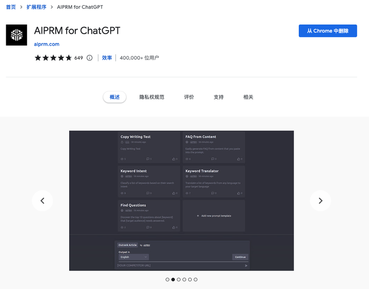 1. 在Chrome浏览器安装「AIPRM for ChatGPT」插件