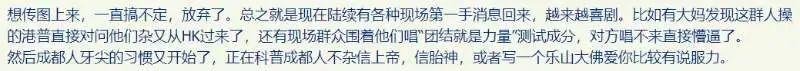 而我之所以要把这件事放在开头跟大家分享,是因为没听我讲这件事儿之前你可能很难理解,当一个香港人操着港普跑到四川街头喊口号,那得是多么显眼。