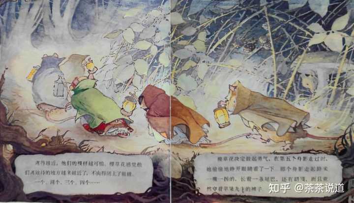“天越来越黑了,雨点哗哗地落了下来,打在她周围的叶片上。樱草花躲在一朵毒蘑菇下面,拼命忍者不哭出来。远处传来一只孤独的猫头鹰的叫声,樱草花头顶上的树枝被风吹得嘎吱作响。离她不远处的灌木丛里,传来一阵窸窸窣窣的声音,这一切都让樱草花害怕极了。”