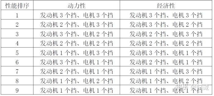 对串并联混动系统,发动机挡位数量的增加比电机挡位数量的增加对改善经济性贡献更大;电机挡位数量的增加比发动机挡位数量的增加对提高动力性贡献更大。但发动机和电机两个挡位以上再增加挡位,对经济性和动力性的改善不如从发动机1挡、电机1挡增加到发动机2挡、电机2挡明显。而挡位数量增加,混动变速器机构复杂度会增加、平顺性和NVH的控制难度也会增加,所以,挡位数量的确定,需要综合考虑。综合考虑动力性、经济性和结构复杂度、控制难度、生产成本等,发动机3挡、电机2挡应该是比较理想的构型方案。
