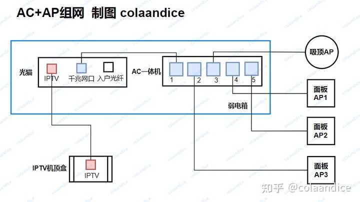 AP组网 在弱电箱中,安装AC一体机,然后其他有网口的位置,比如客厅,卧室等位置,安装面板AP即可。