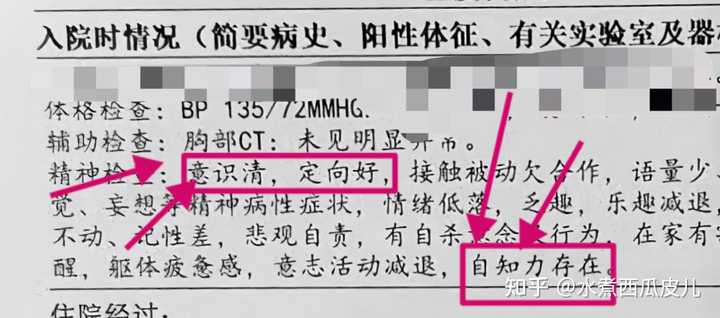 患者病例里面会有精神检查关于自知力的一项:自知力存在/不存在/部分