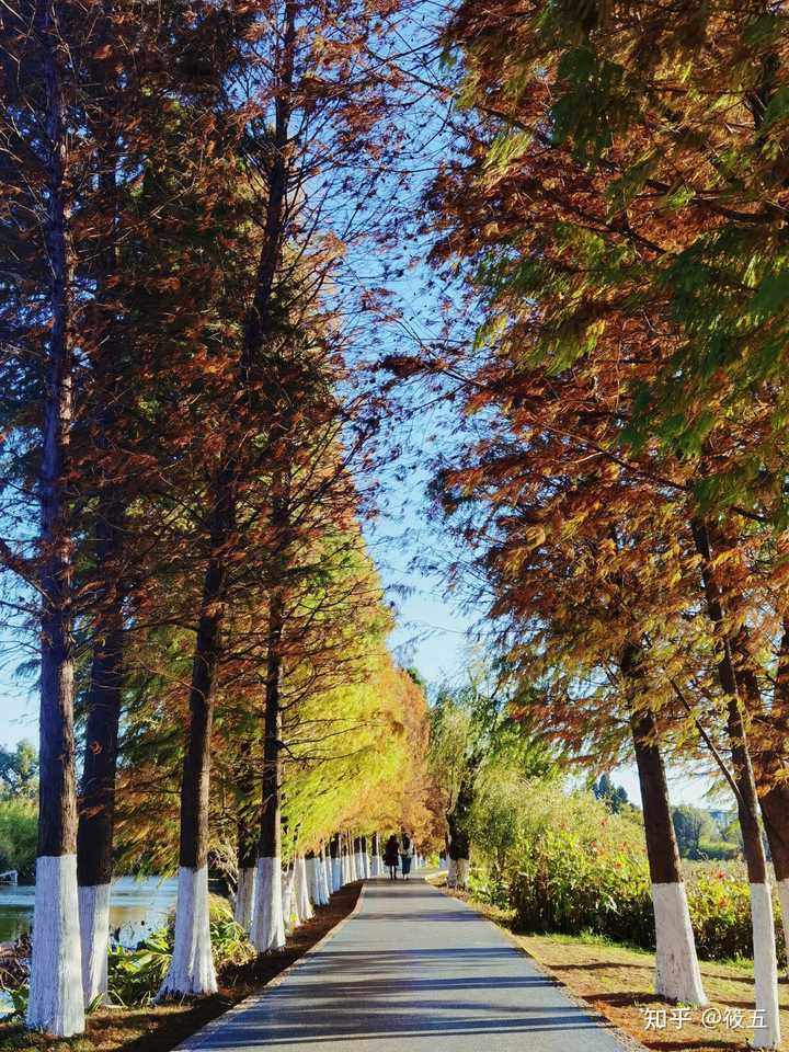 以前书里描绘冬天:皑皑白雪,没有!树枝上只剩下枯枝,见图上叶子还在!寒风呼呼地吹,嗯 这两天昆明断崖式降温,是有点冷。