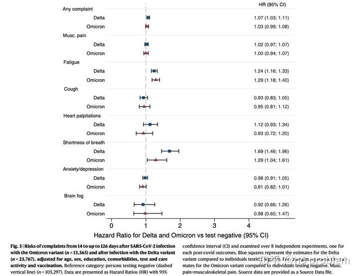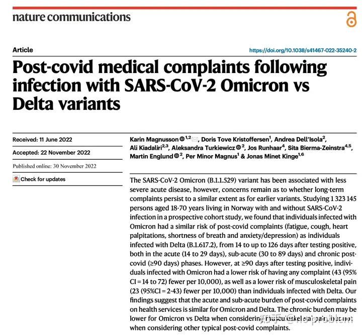 劝退学科实验狗强答一波,几年前参加过流感相关项目,还是可以说两句的,对奥密克戎后遗症的误解首先源自本站一批常年靠夸大疫情恰饭的网红,比如之前冒充专业人士最近被戳穿灰溜溜改名某帮主的四川导游陈某,之前这类网红们一直造谣全世界水深火热,一会儿南非大的要来了,一会儿新加坡大的要来了,结果啥都没来,次次被打脸,现在无话可说又开始大肆断章取义危言耸听的造谣新冠后遗症。其实类似流感这类传染病从科研角度讲的后遗症和一般老百姓认为的差距巨大,有些极低概率症状也不严重的后遗症有科研价值,但是和绝大多数人一点关系也没有,举个最近的例子,nature刚发了一篇挪威基于大量患者数据的Post-covid研究: