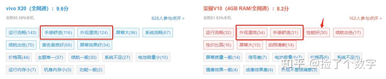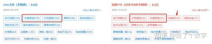 比如说,2017年同期推出的vivo X20和荣耀V10对比: