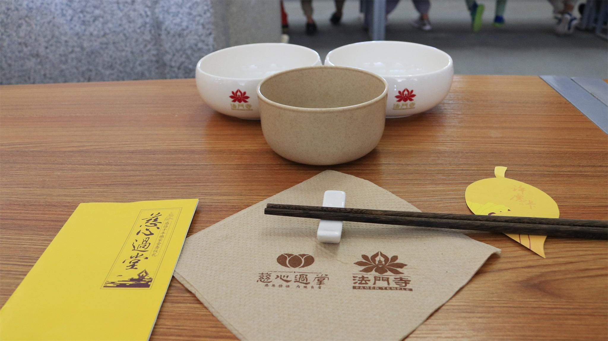 在合十舍利塔东侧千手观音殿内就是法门寺素斋,吃饭前居士们会念诵《供养偈》、《结斋偈》,每人面前摆放着一饭、一菜、一汤,量不大,但味道是非常不错的!