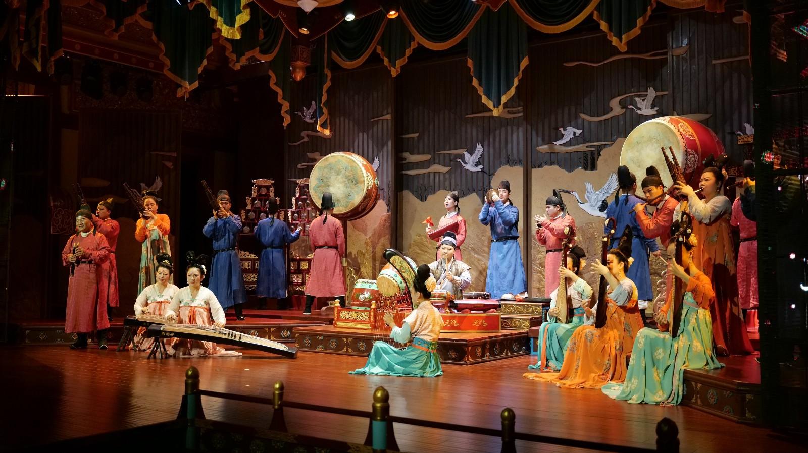 乐师们以竹笛为主奏乐器,吹奏乐器有笛、笙、管,击奏乐器有坐鼓、战鼓、乐鼓、独鼓及大铙、小铙、大钹、小钹、大锣、马锣、引锣、铰子、大梆子、手梆子等中国传统乐器,为大家呈现出千年古音!来到了西安,推荐大家一定要感受一下西安鼓乐,绝对会让你一秒梦回大唐!