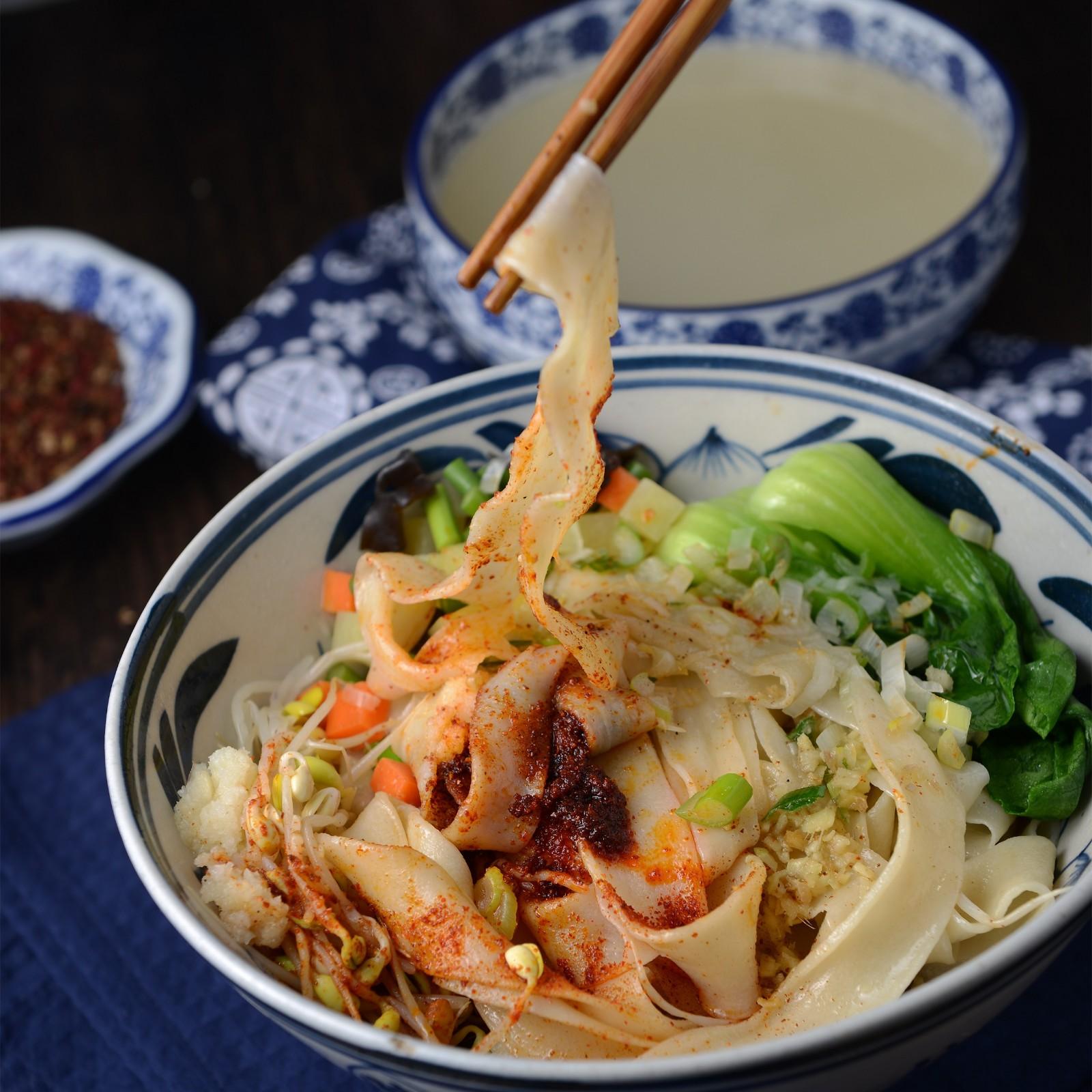 “面条像裤带,锅盔像锅盖”陕西八大怪中像裤带一样宽的面条就是biangbiang面,在电视剧《白鹿原》中白稼轩吃面的镜头,也让西安的biangbiang面再次火遍大江南北,biangbiang面因为在扯面时有biang、biang的声音而得名,最后放上配菜、辣椒面,热油一泼,香味扑鼻,硕大的碗内一般只有1根或者2根面,就足矣吃撑!