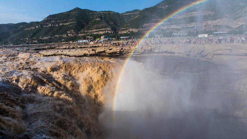 秋汛发生在每年的10-11月,黄土高原来到了雨季,黄河裹挟着泥沙,在壶口瀑布喷腾呼啸、跃入深潭,水汽氤氲在阳光的照射下,在瀑布之上挂起弯弯的彩虹!