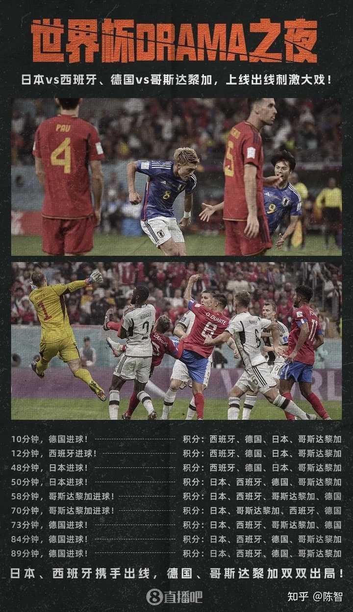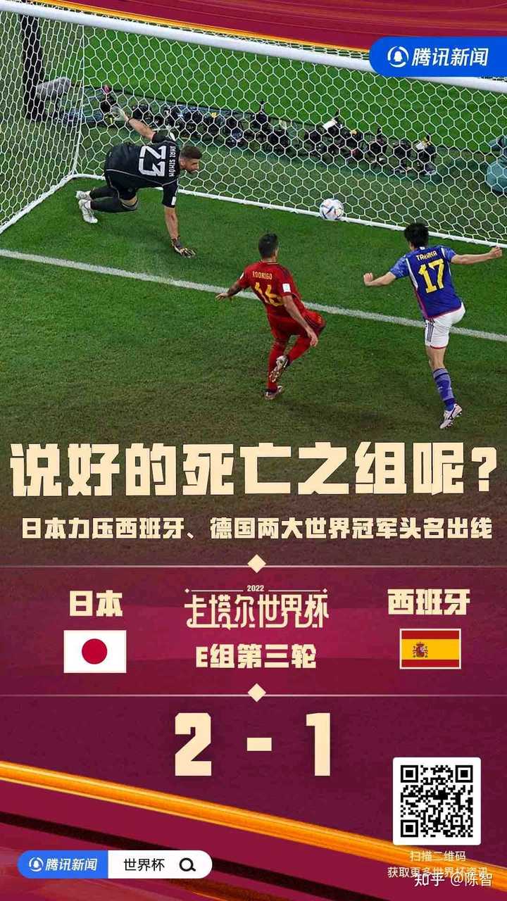 世界杯E组第3轮,日本2-1西班牙,哥斯达黎加2-4德国。E组最终积分榜,日本头名出线,西班牙小组第2晋级,德国小组第3出局!哥斯达黎加小组垫底。世界杯1/8决...