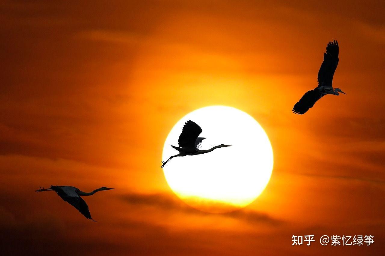 2.落霞与孤鹜齐飞,秋水共长天一色。出自唐代·王勃的《滕王阁序》。以落霞、孤鹜、秋水和长天四个景象勾勒出一幅宁静致远的画面。就像下面这张图片一样,落霞之下,是一派祥和,橘色的温暖直击人心。
