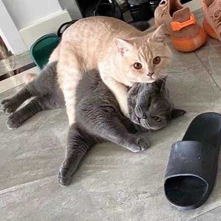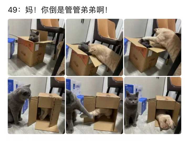 只要四九(我家的大猫,下图中那只灰色的英短耗子)喜欢的东西,没过2秒钟就会被四十搞到手。虽然我经常告诉他:“你是一个保镖,你的任务就是保护少爷四九。”