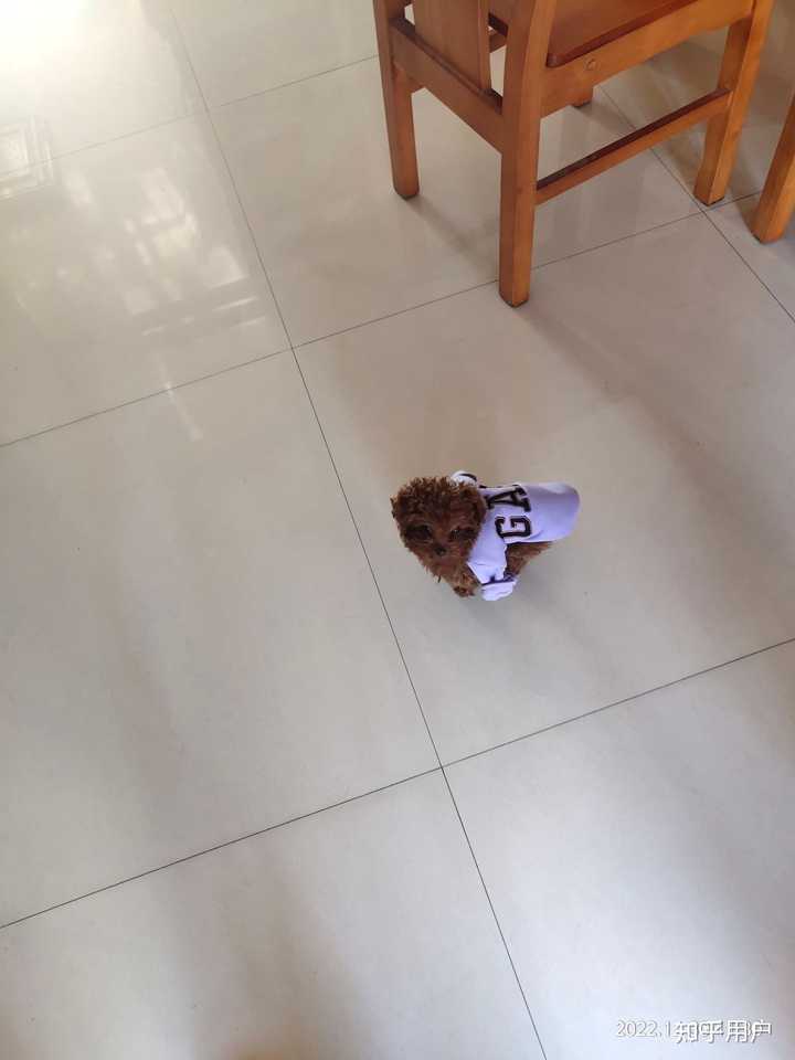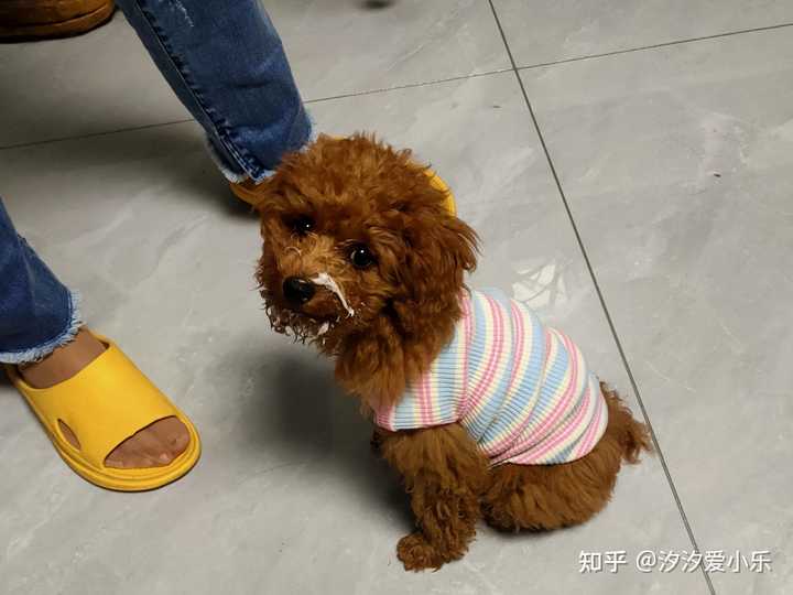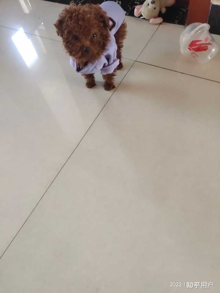 它叫球球,是9月初在宠物市场买的泰迪,身价550。快5个月了,6斤。它是标体泰迪,很聪明,一天八百个坏心眼子
