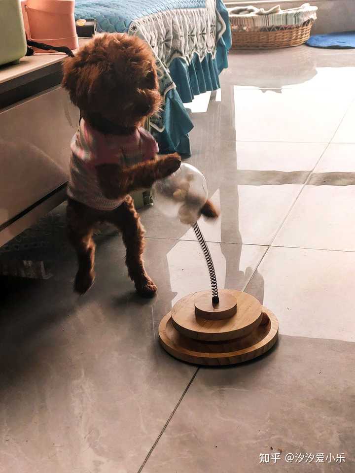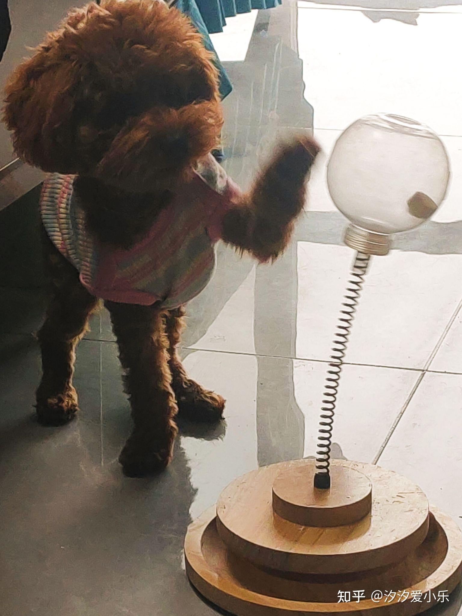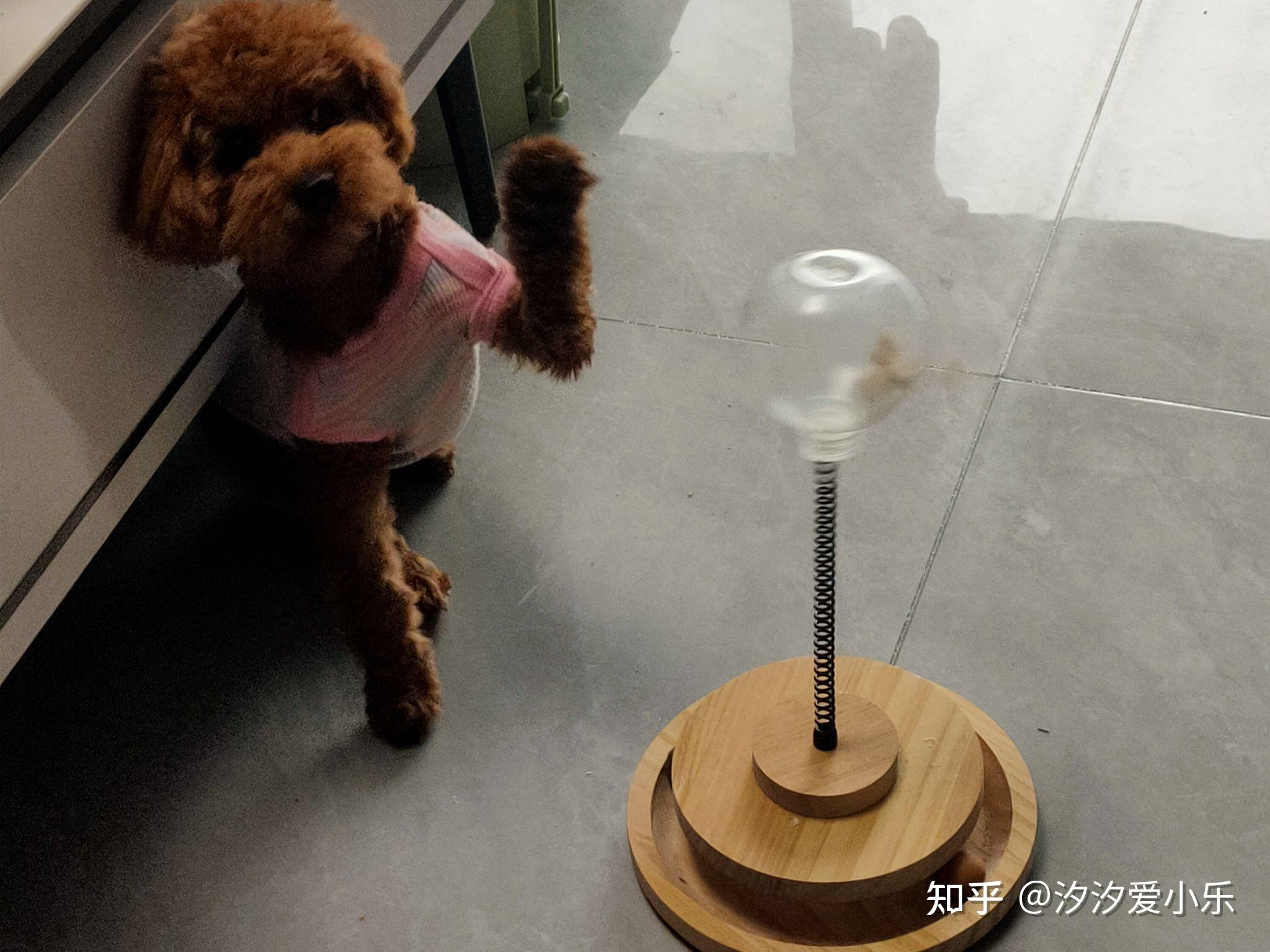 这个是漏食球玩具,把狗粮零食装进去,它自己摇出来吃了