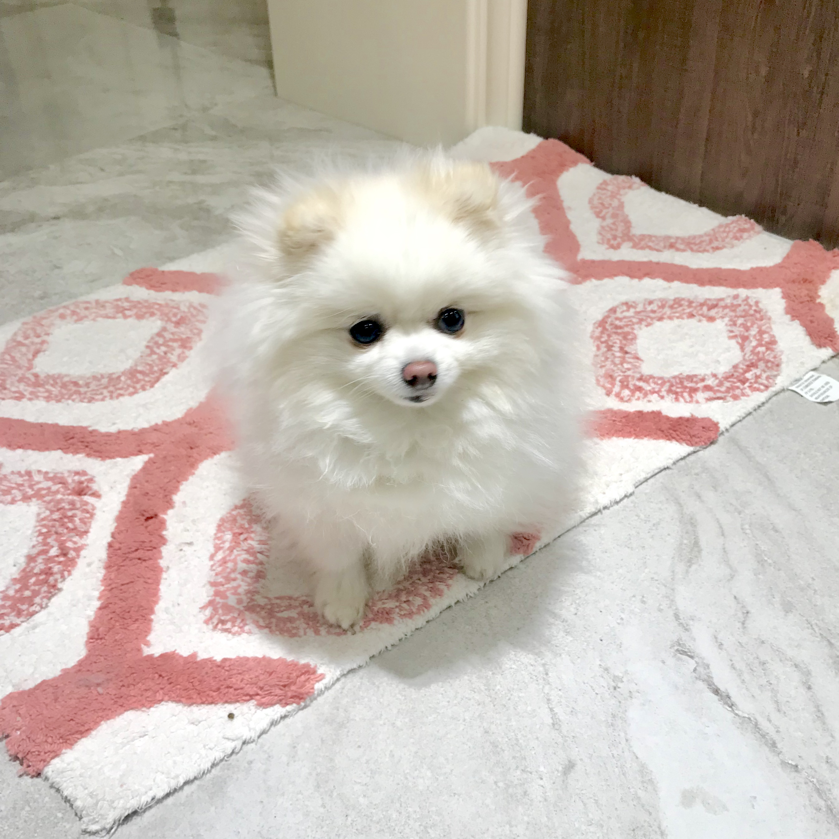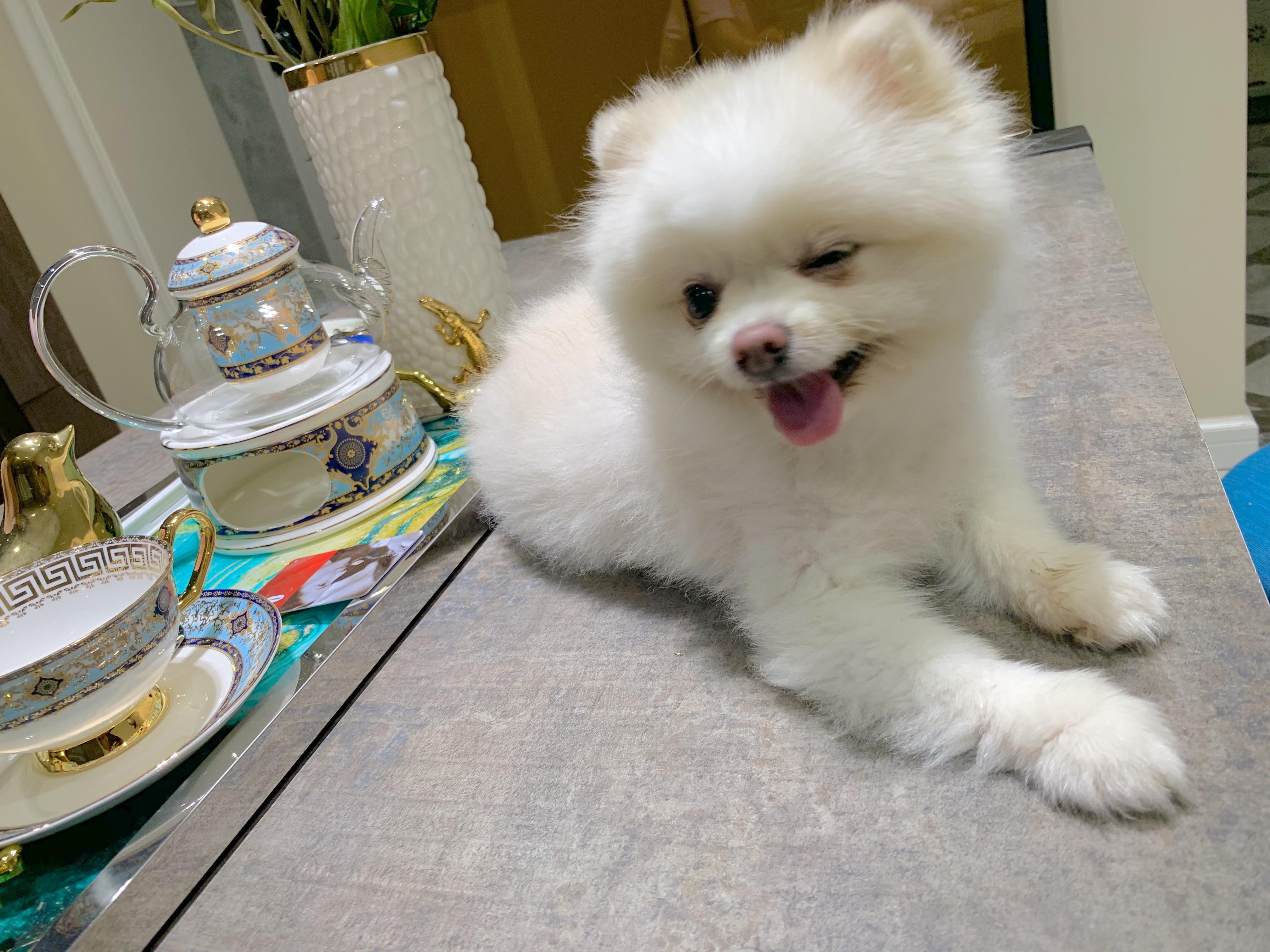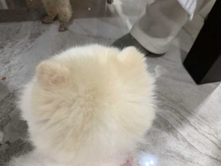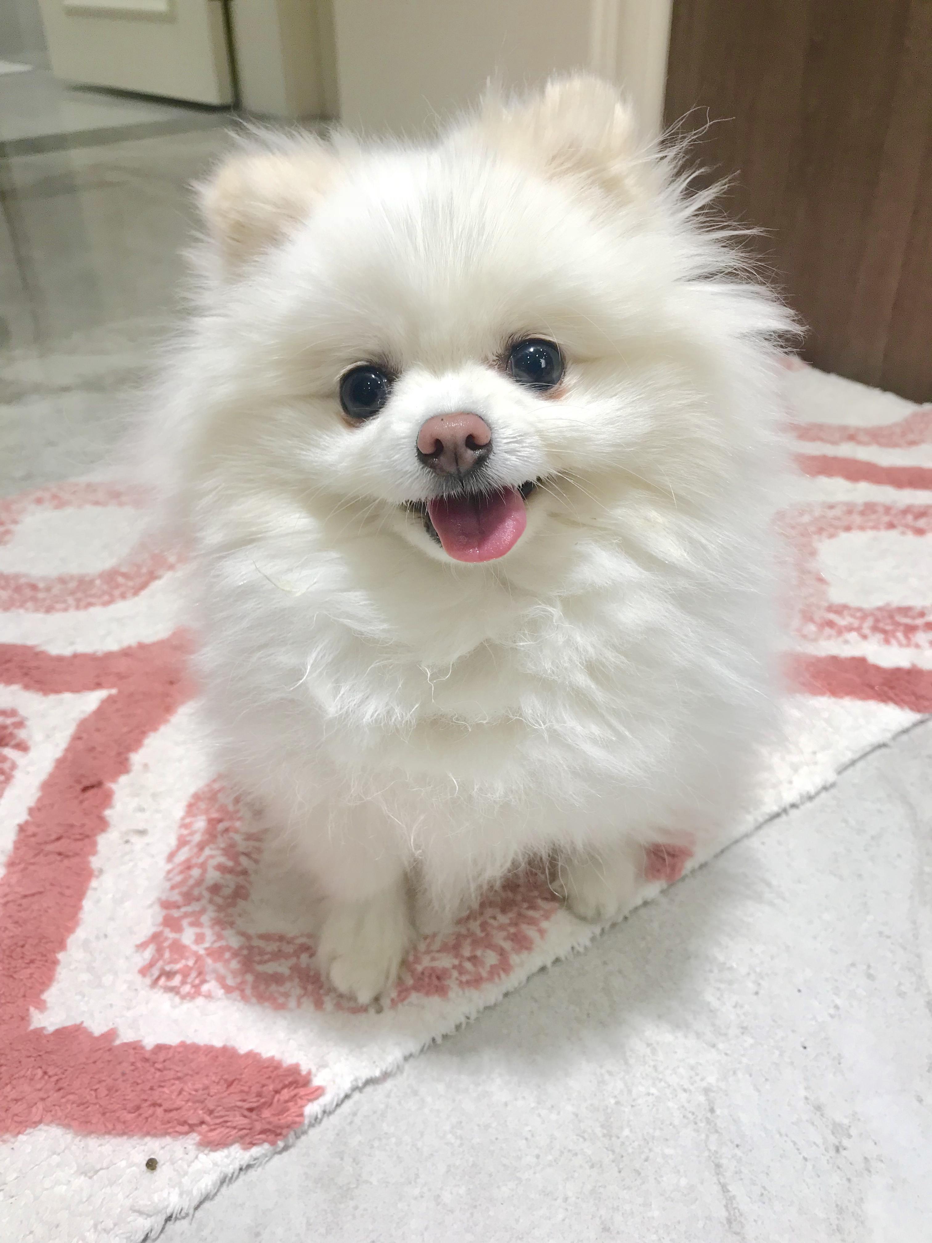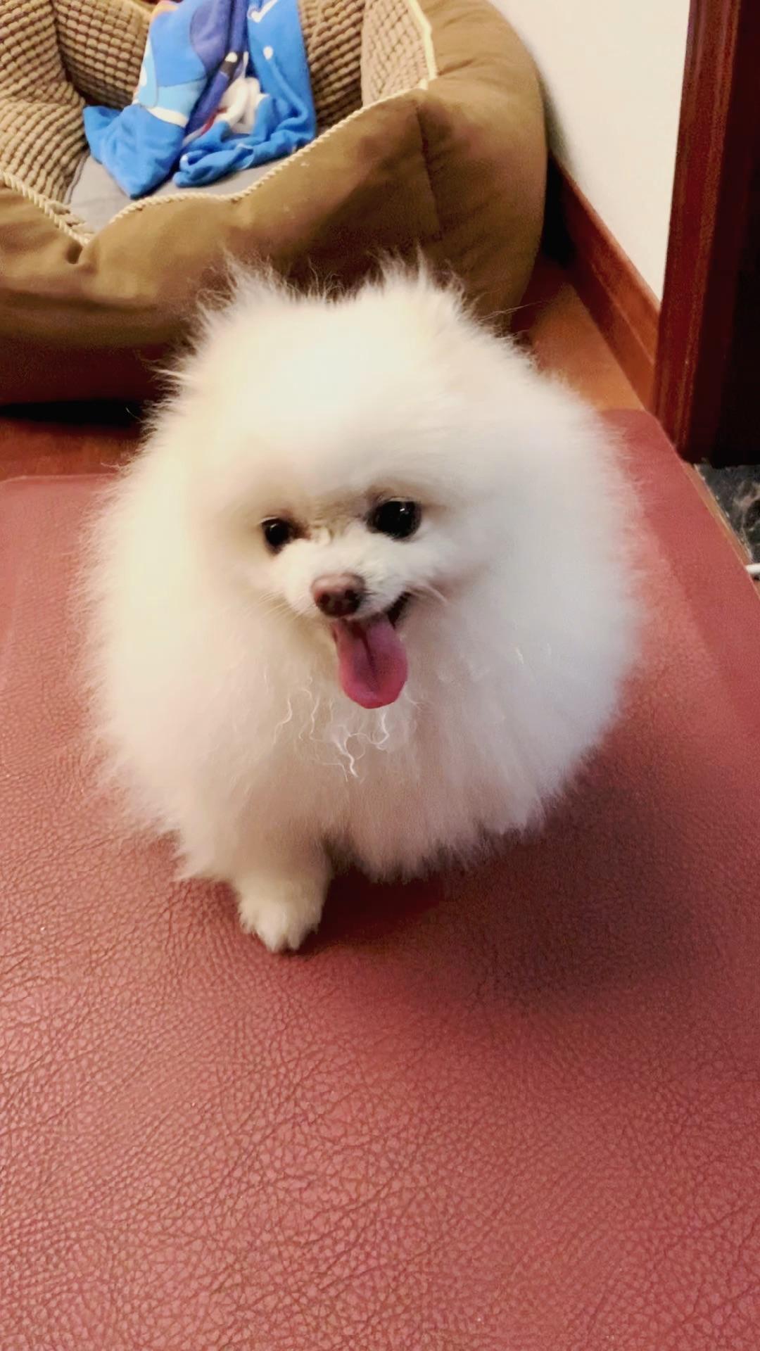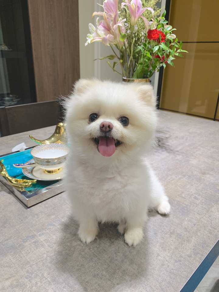 抱回来的时候全身毛茸茸雪白雪白,所以取名叫珍珠,但是现在毛色大有越来越黄的趋势