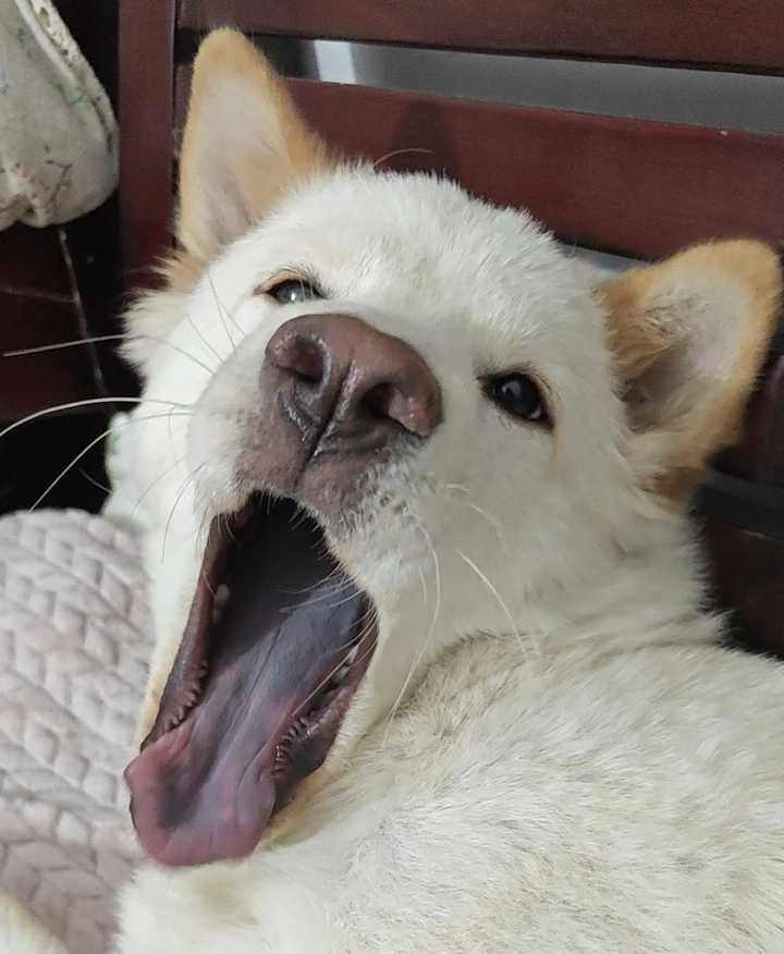 我超凶!(其实是在打哈欠,不是想咬人。它很乖)哈哈哈