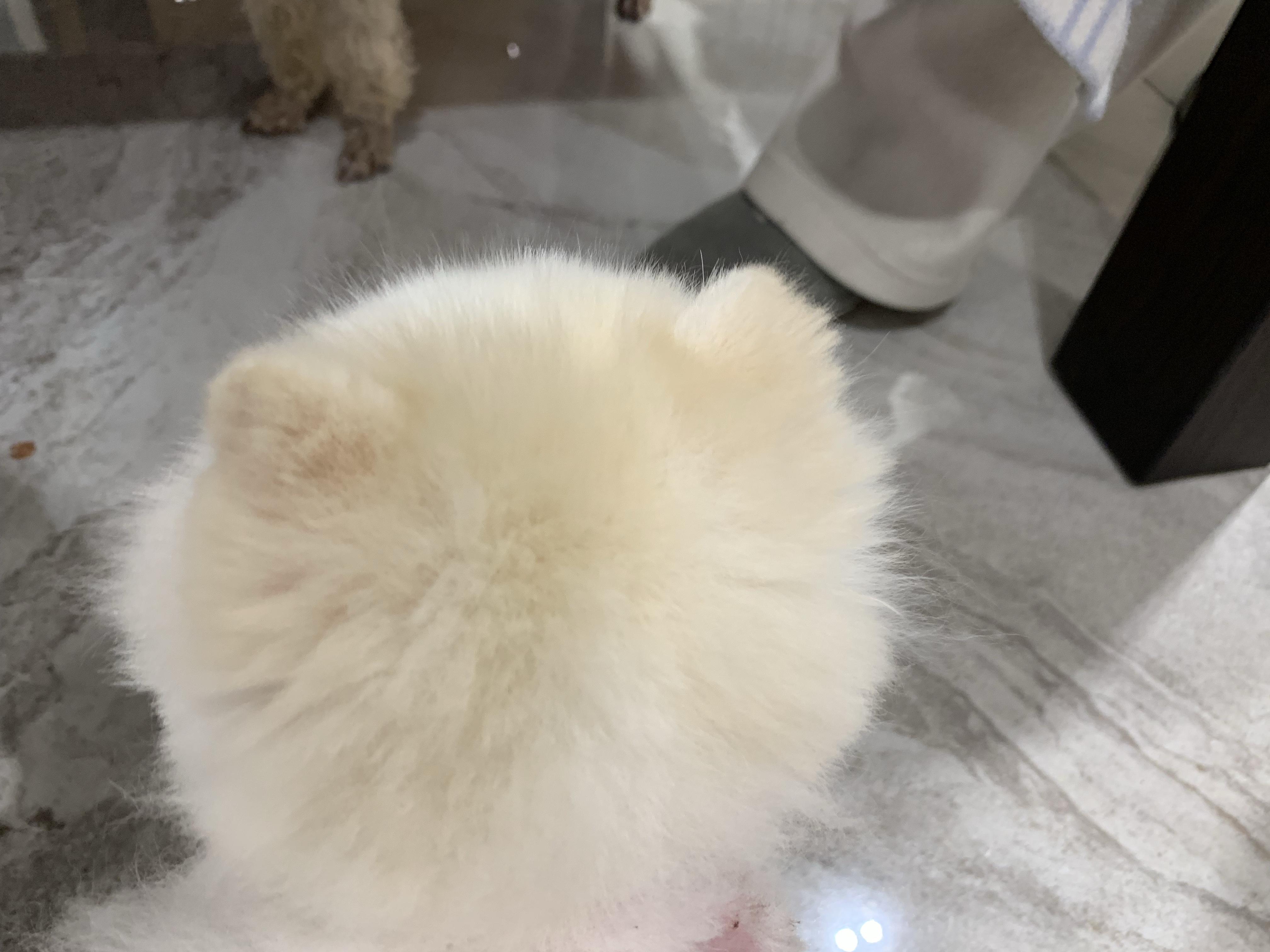 它眼角的泪痕,我总没办法去掉,来的时候就很重了,每天帮它擦,还跟着网上用淀粉摩擦,看着也没什么变化。